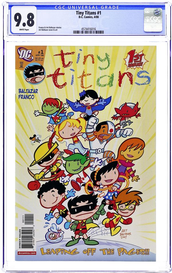 Written by Art Baltazar & Franco Art and cover by Baltazar & Franco Awwww yeah, Titans! Join us for the exciting first issue of Tiny Titans written and drawn by the amazing Art Baltazar and Franco! See what life is like at Sidekick Elementary and meet the new staff! Follow the madness that ensues when Beast Boy gets a puppy friend! Witness what happens when the girls meet a pink stranger with a melted ice cream cone! Find out what makes Cassie such a trendsetter! All your favorite Titans, in their cutest possible form, are here and waiting for you!