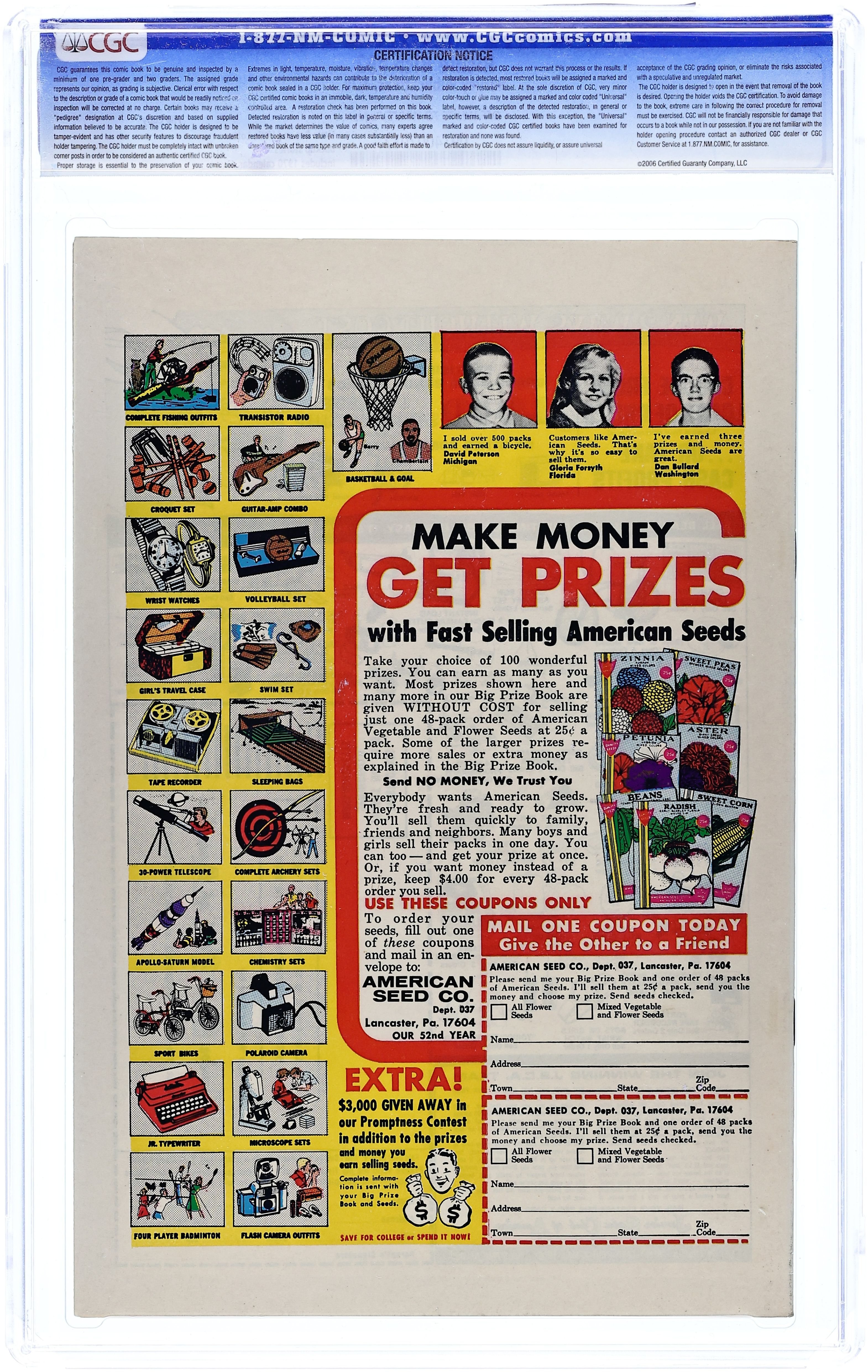 Ends Apr 15 7:41 PM CST Bid History 19 bids Current Bid $705 Your Secret Max Bid If you'd like to bid, please log in or register. Cover pencils by Warren Kremer. School Bus Safety public service announcement featuring Casper. ABC Funday Funnies ad. "Early To Bed," pencils by Warren Kremer; After an "early to bed, early to rise" lecture from Mr. Rich, Richie resolves to make the most of his day; As the school football team's assistant manager, he must bring the team's equipment to an out-of-town game, requiring an early morning. One-page Pee Wee story, pencils by Warren Kremer. One-page Little Dot story, pencils by Warren Kremer. For The Birds," pencils by Warren Kremer. Uncle Tape's Speedy Fixer," pencils by Sid Couchey; Dot's Uncle Tape sends her a can of instant bandages. The Funny Bunny" text story by Sid Jacobson. The Wall" text story by Sid Jacobson. Singing Sensation," pencils by Sid Couchey; Lotta tries out for a talent agent. 36 pgs., full color. Cover price $0.10.