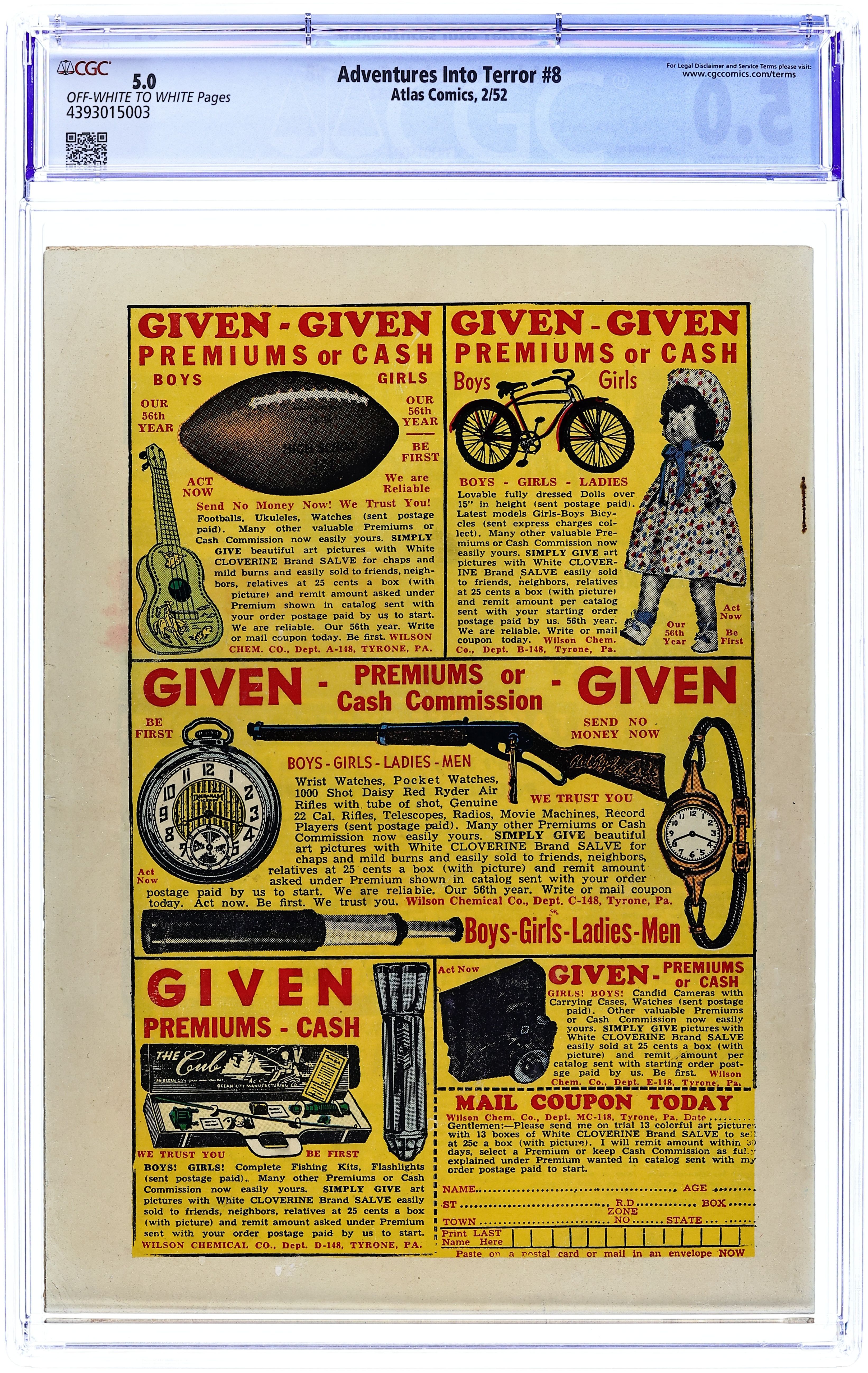 Published Jan 1952 by Marvel/Atlas.$300.00- Paper: Off white to white