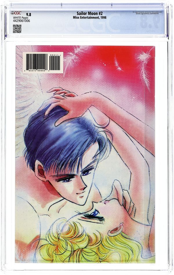 Story and Art by Naoko Takeuchi. Naoko Takeuchi pens a brief note commemorating the end of the Sailor Moon series and thanking her readers. Luna's Wish Upon A Star, script by Naoko Takeuchi and Anita Sengupta, art by Naoko Takeuchi and Roselyn Santos; Sailor Moon, the inner and the outer senshi and Sailor Chibi-Moon all battle to hold back Princess Snow Kaguya and her minions; Meanwhile Luna, with some last minute help from Sailor Moon's Silver Crystal, struggles to keep Kakeru from giving up. Naoko Takeuchi writes about the production of the second Sailor Moon movie, "Princess Kaguya's Lover", and the serialization based on the film that appeared in Nakayoshi magazine; She also shares some of her production sketches from the undertaking. 52 pgs., full color. Cover price $2.95.