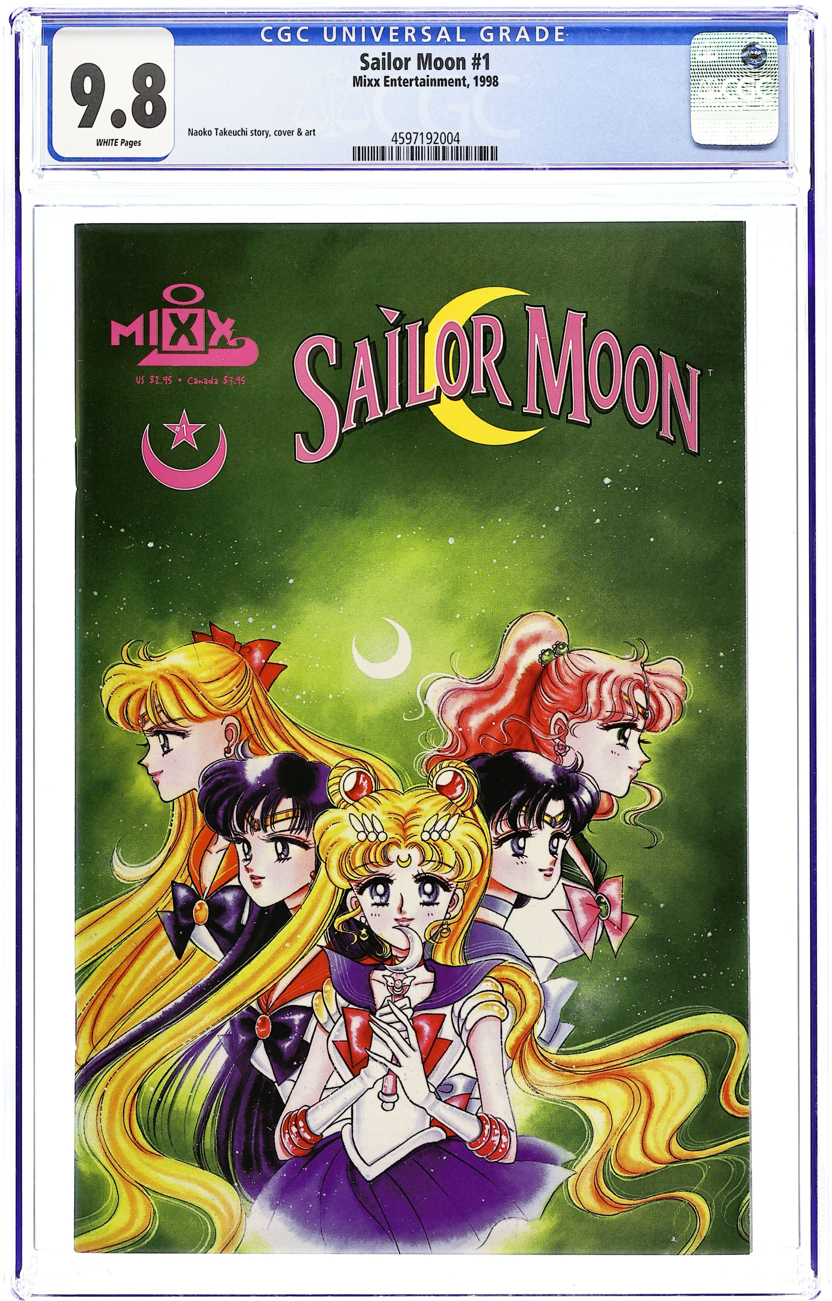 Story and Art by Naoko Takeuchi. Princess Serenity Revealed, script by Naoko Takeuchi and Stu Levy, art by Naoko Takeuchi; The appearance of the Imperium Silver Crystal reveals the identity of Princess Serenity; Darien regains his memories of The Crystal Kingdom; But Beryl and Kunzite abduct him, hoping to turn him to their side and capture the Silver Crystal from the Princess. Sailor Moon back cover illustration by Naoko Takeuchi. 52 pgs., full color. Cover price $2.95.