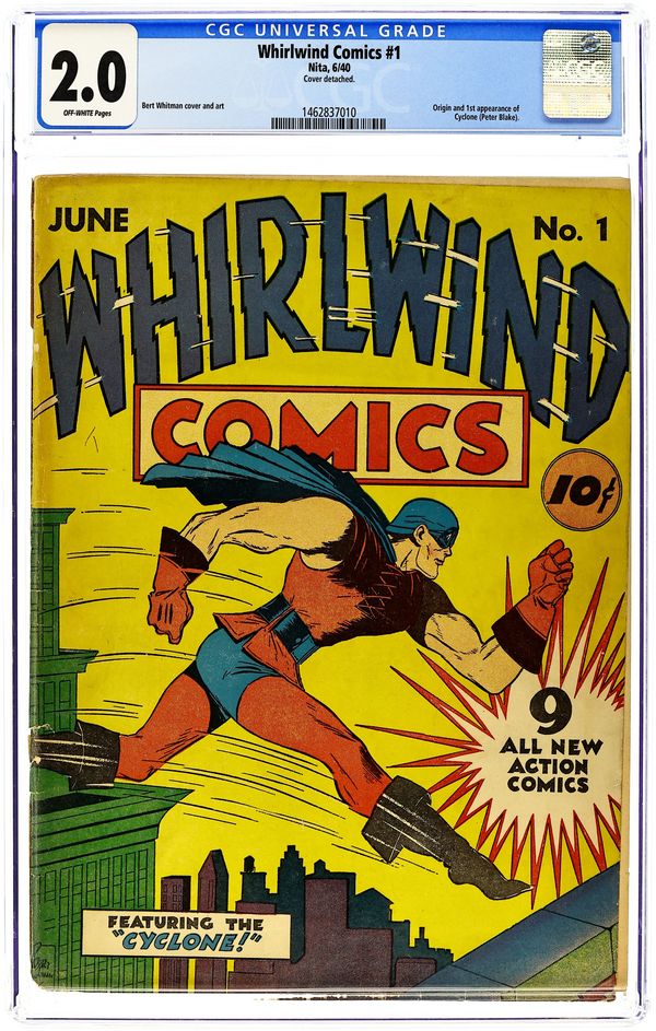 Cover by Bert Whitman. Stories and art by Bert Whitman, V. J. Kay, Robert Turner, Henry Boltinoff, Rudolf Johnson, and Pagsilang Isip. The adventures of Cyclone and other early superheroes from the Golden Age of comics. Years of martial-arts and acrobatic training transform Peter Blake into the masked crimefighter known as Cyclone. Inspector Blake of Scotland Yard is called in by the Prime Minister when a threat is made on the life of explorer Sir Neville, but surely his butler is not the culprit. Canadian Mountie Rex Royce tracks a killer deep into the frozen wastes of the Canadian north. Plus a story by pioneering Filipino-American artist Pagsilang Rey Isip. Cyclone; Wings Bordon; Inspector Blake; Lt. Jim Landis; Jungle Madness; Rex Royce; Dick Blaze; Bruce Barlow; Doodad the Detective: The 3 Spooks; Smash Dawson and the Magic Mandarin. 64 pages, Full Color. Cover price $0.10.