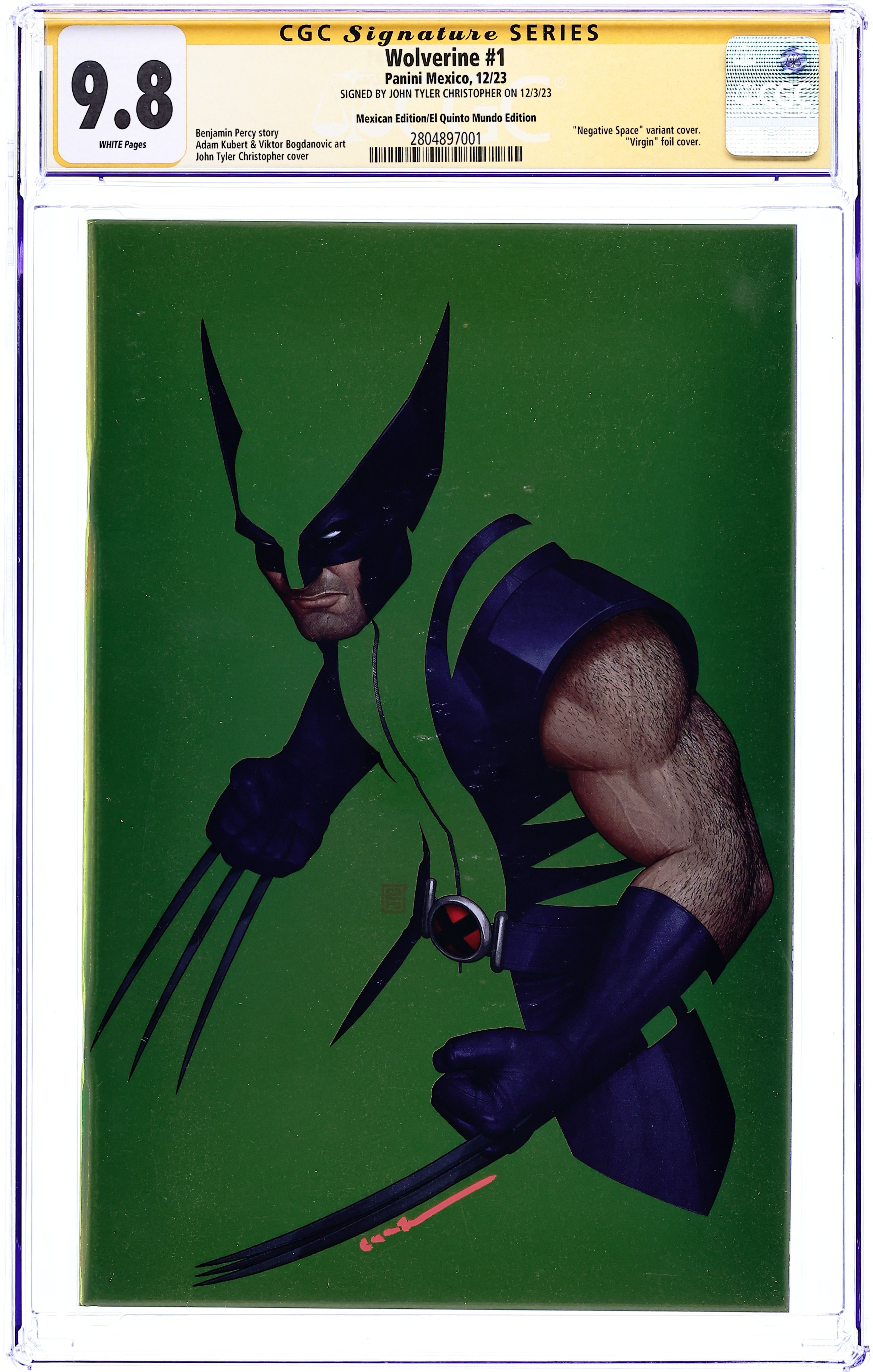 Mexican Edition. El Quinto Mundo Exclusive "Negative Space" Foil Edition Virgin Cover by John Tyler Christopher. Reprints Wolverine (2020 6th Series) 1. Story by Benjamin Percy. Art by Adam Kubert and Viktor Bogdanovic. Full Color, Spanish Language.