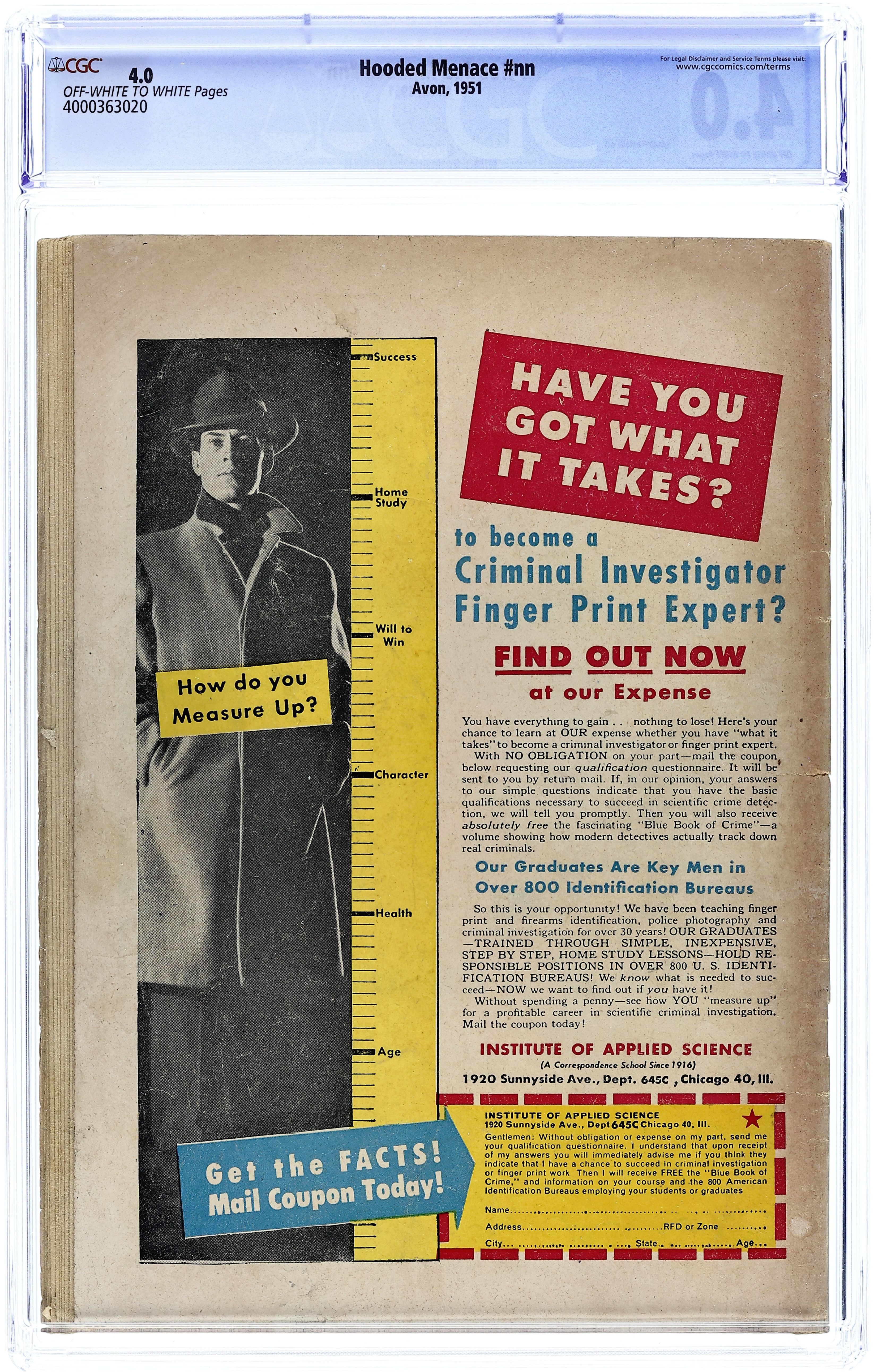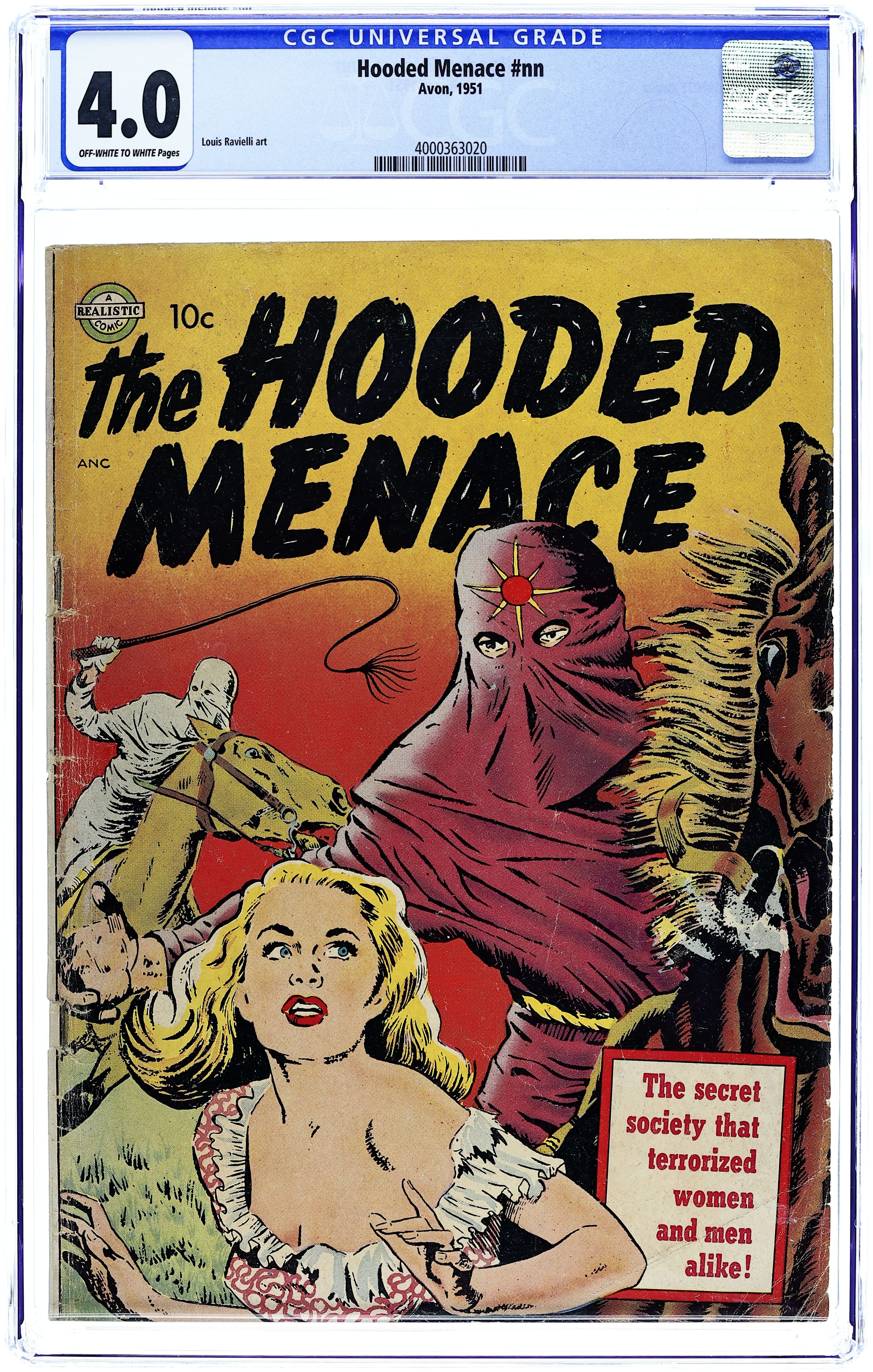 Published 1951 by Realistic Publications.Hooded Menace (1951 Realistic Publications) 0 CGC 4.0