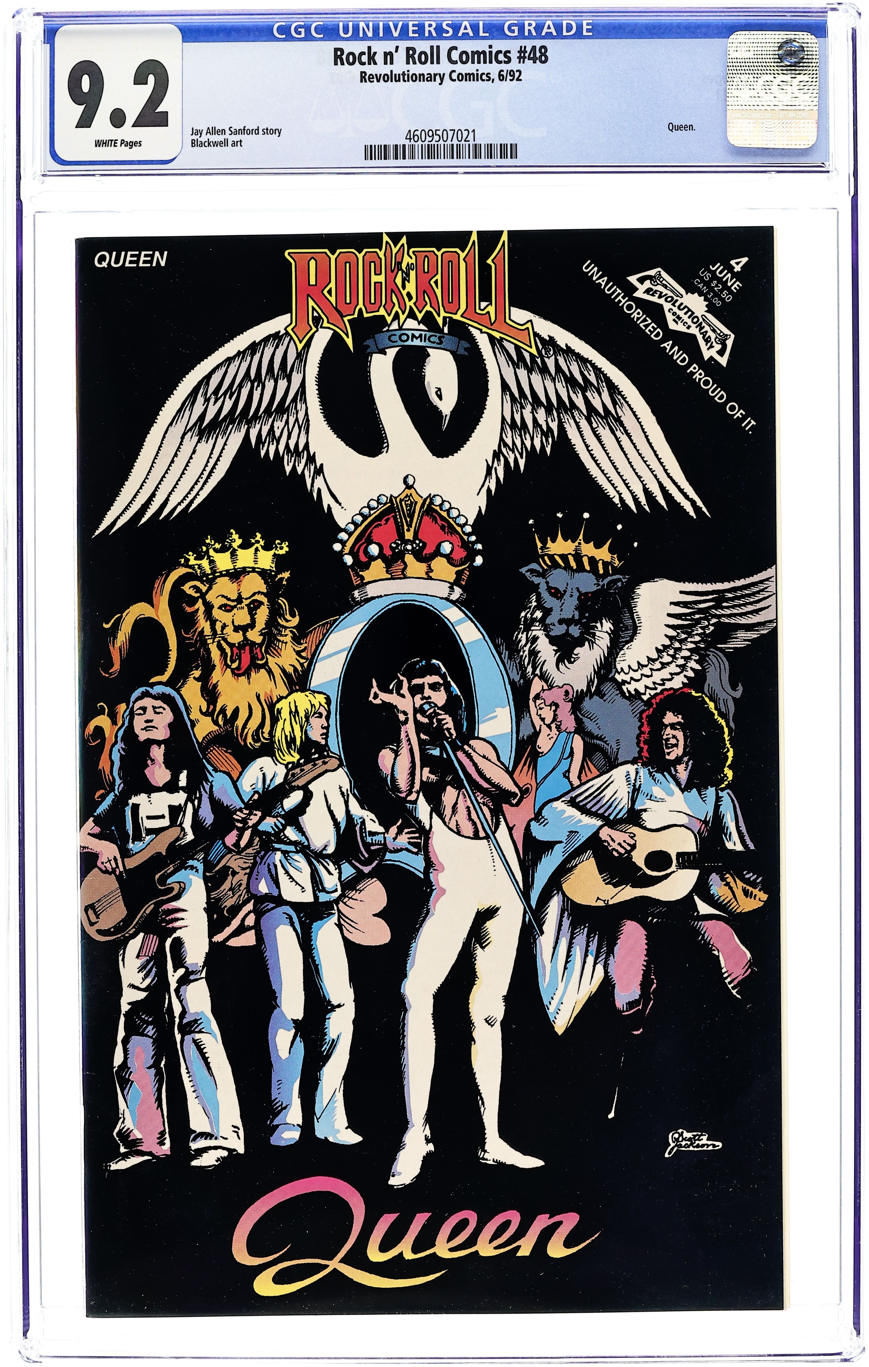 Queen redefines the sound of rock with influential hits like We Will Rock You. Written by Jay Allen Sanford, with art by Blackwell. Black and white; 32 pages. Cover by Scott Jackson. Mature Readers. Cover price $2.50.