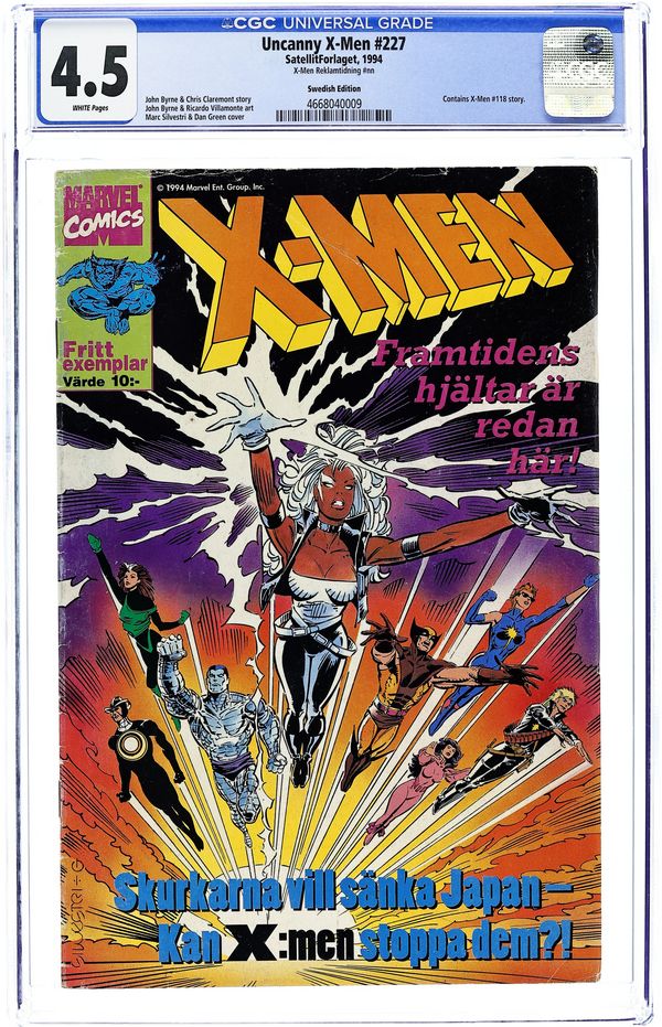 Swedish Magazine advertising X-Men action figures. Reprints Cover from Uncanny X-Men #227. Reprints Material from X-Men #118. Story by John Byrne and Chris Claremont. Art by John Byrne and Ricardo Villamonte. Cover by Marc Silvestri and Dan Green. Also features character profiles and text stories. Swedish Language.