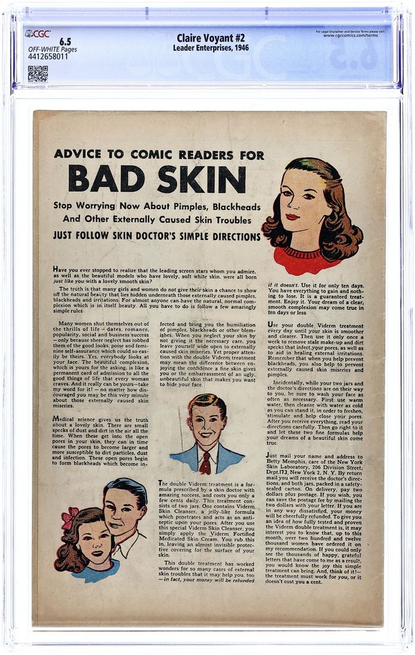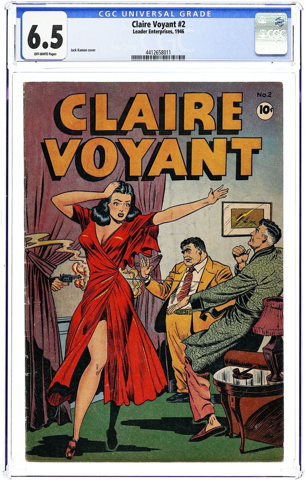 Cover by Jack Kamen. Stories and art by Jack Sparling. Reprints of the classic comic strip about the adventures of an amnesiac singer. After Claire discovers the body of producer Rodger Timberly, she is accused of his murder. The real killer is rival actress Laura, hoping to get a plum part in a Broadway play for herself. When agent Swing'n Gates and mobster Hairy Harry prove Laura did it, she kidnaps Claire, forcing a standoff with the mobsters. Featuring some good girl art by Sparling, and a good-girl/pre-Code cover by future EC legend Jack Kamen. 32 pages, Full Color. Cover price $0.10.