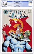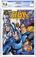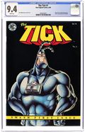 First printing. NOTE: This is a 1st Printing. 1st printings do not have a 2nd or later printing notice in indica. Written by Ben Edlund. Art and cover by Ben Edlund and Dave Garcia. The Running Guy tries to stage a mock battle with The Red Scare to make his reputation as a hero but The Tick intervenes and ruins the deal. Photo log of Edlund's round the world trip with special appearances and commentary by The Tick. 36 pgs., B&W. $2.25. Cover price $2.25.