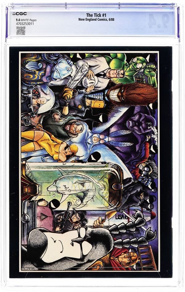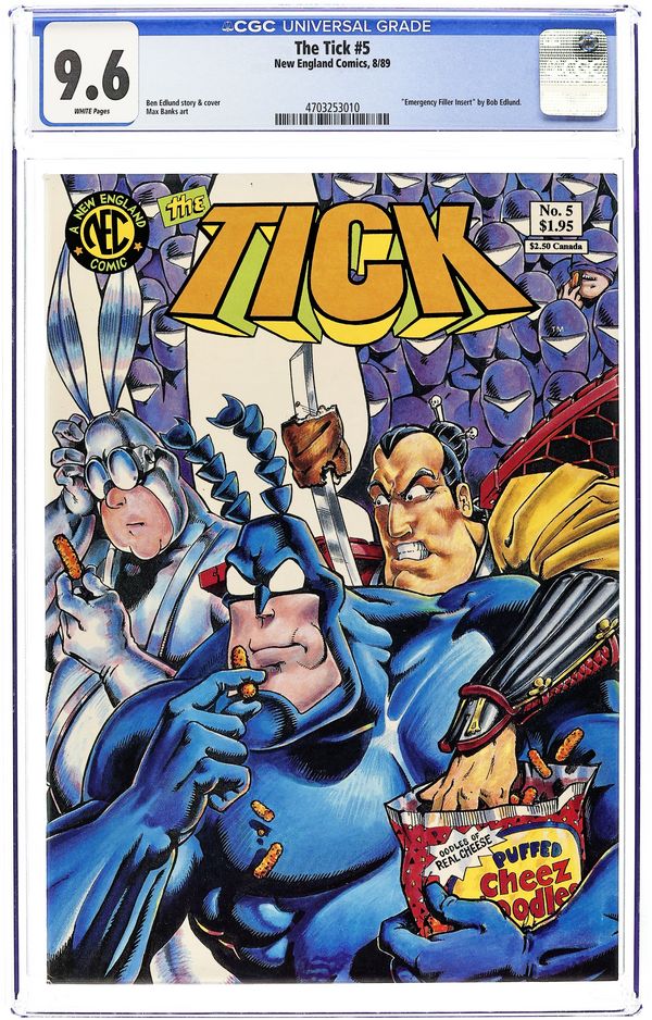 First printing. NOTE: This is a 1st Printing. 1st printings do not have a 2nd or later printing notice in indicia. Written by Ben Edlund. Art by Ben Edlund. Cover by Max Banks. The Tick, Paul and Arthur prepare to battle a million zillion ninjas but end up facing only one. Arthur becomes Tick's sidekick. The Tick pinup by Ben Edlund.44 pgs., B&W. $1.95. Cover price $1.95.