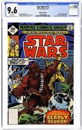 1st Printing, Whitman Diamond Edition. A New Hope: Part 6 of 6. "Is this the Final Chapter?!" Based on the screenplay by George Lucas. Adapted by Roy Thomas. Art by Howard Chaykin, Rick Hoberg, and Bill Wray. This is it, the explosive conclusion to the biggest space epic of all time! Armed with the secret plans, the Rebel Alliance mounts an all out attack on the evil Empire's ultimate weapon, the Death Star. However, they'll have to break through the monstrous space station's own defenses and dozens of deadly Tie-Fighters to get to its weak point. As the Rebels' time begins to run out, and their fleet of X-Wing Fighters begins to dwindle, it falls upon young Luke Skywalker and the power of the force to save the day. But first he'll have to get past the most dangerous man in the galaxy - Darth Vader! Cover price $0.35.