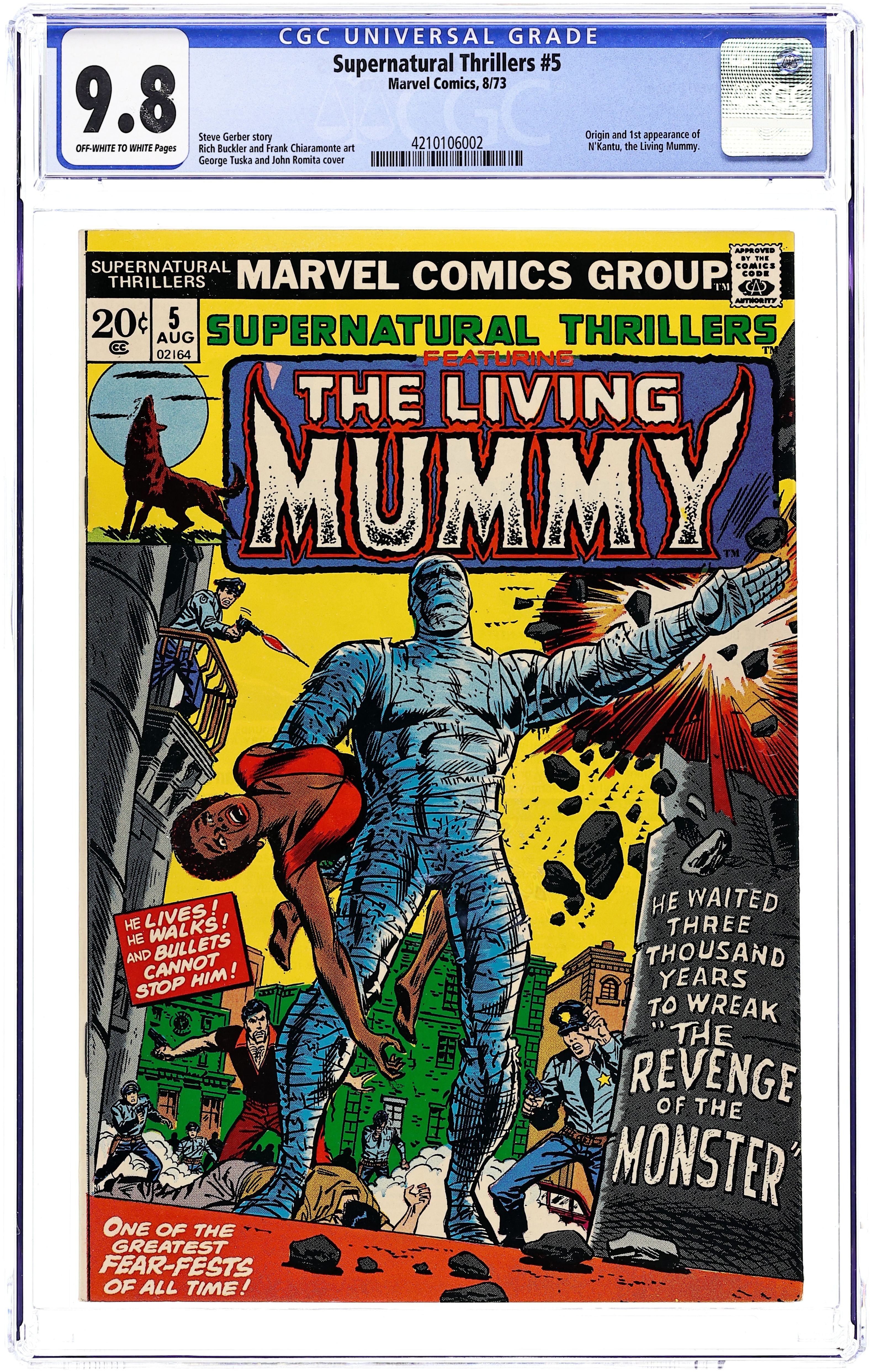 Marvel Value Stamp. Cover pencils by Gil Kane, inks by Al Milgrom. Pyramid of Peril!, script by Tony Isabella, pencils by Val Mayerik, inks by Dan Adkins; The Mummy battles the Living Pharaoh for the possession of the scarlet scarab. The Secret of the Universe!, script by Stan Lee, art by Steve Ditko. 36 pgs. $0.25. Cover price $0.25.