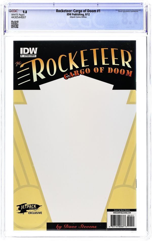 Cover A by Alex Ross. The Rocketeer Flies Again! Dave Stevens unveiled the Rocketeer nearly 30 years ago to instant acclaim, and in all the years since that auspicious debut, respect for Dave's talent and his greatest creation have only continued to grow. Last year, IDW had the honor of releasing the complete Rocketeer saga in several editions, showcasing the work of this great artist as it was always meant to be seen-completely remastered, with nearly every page scanned directly from the originals and recolored by Dave's hand-picked colorist. Today we are able to celebrate Dave's talent once again, with an all-new Rocketeer anthology miniseries written and drawn by some of the finest creators in comics, and with the full cooperation of the Stevens family. The first star-studded issue of The Rocketeer features a gorgeous cover by Alex Ross, and terrific stories by John Cassaday, Mike Allred, Kurt Busiek, and Michael Kaluta, plus outstanding pin-ups by Mike Mignola and Jim Silke-all paying tribute to the continued legacy of Rocketeer and Dave Stevens! Cover price $3.99.