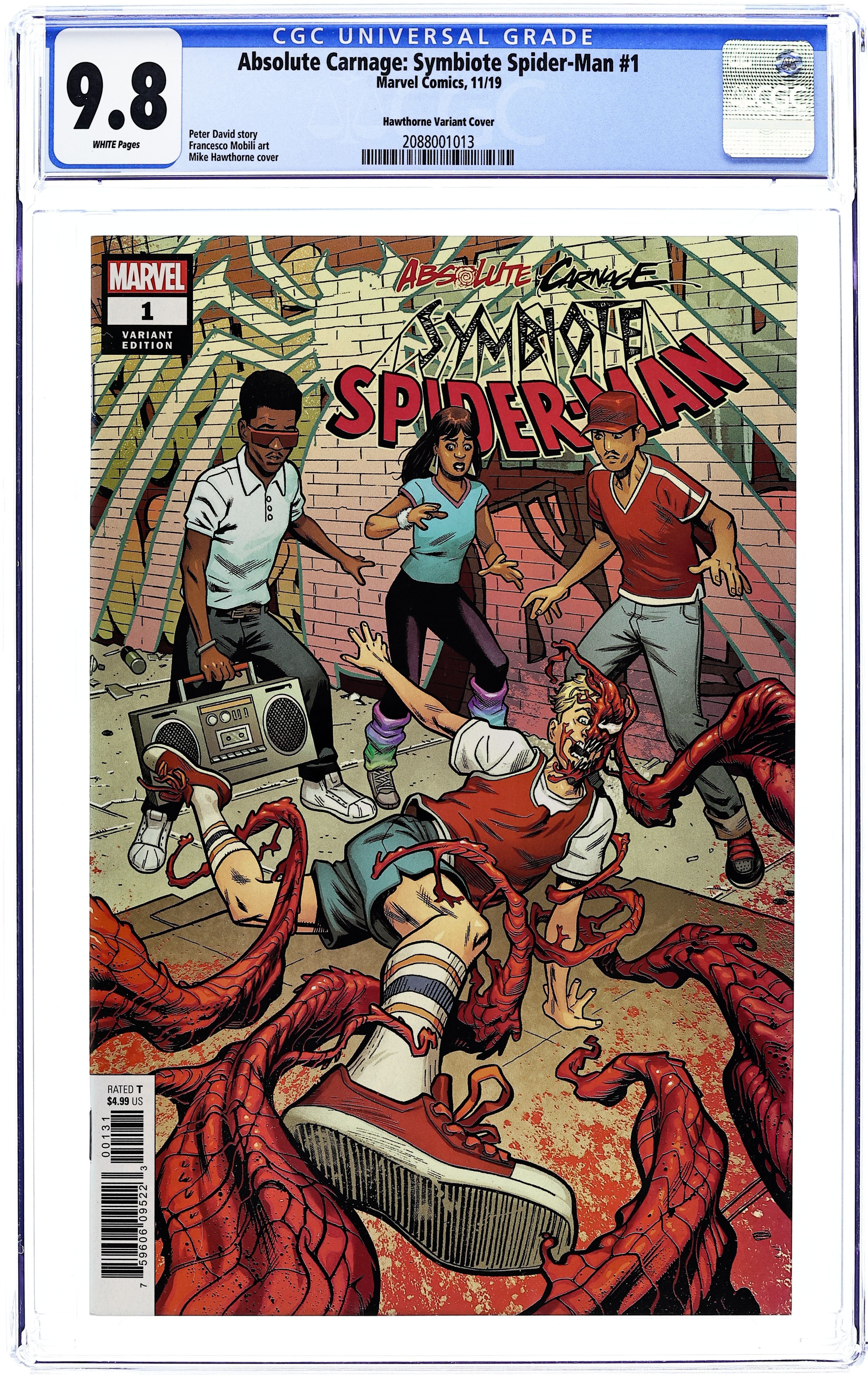 Limited 1 for 50 Retailer Incentive Variant Cover. Written by Peter David. Art by Francesco Mobili. Cover by Mike Hawthorne. AN UNTOLD TALE OF A SYMBIOTIC HOST FROM YESTERYEAR...During its first visit to New York City, the alien symbiote that would come to be known as Venom bonded to a host that wasn't Spider-Man or Eddie Brock. Face front, True Believers, as this mysterious man meets his destiny... at the hands of CARNAGE! 36 pages, full color. Rated T Cover price $4.99.