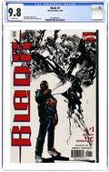 Do not confuse w/ Blade Vampire Hunter series. cover by tim bradstreet christopher hinz (w)/steve pugh (p) ? THE SCOOP: Thirsting for a Blade comic as wicked as his new movie? Then get ready for the vampire killer's own MAX title! ? THE STORY: Blade is back, and he's hunting a new threat: the Tryk, an extremely vicious mutant vampire species. Complicating the situation is the appearance of the Seven, a secret society dedicated to the destruction of supernatural evil. Incredibly, they see Blade as the most dangerous vampire of all! And at the same time, an ancient vampiric text sends Blade on a quest to renounce his monstrous heritage and become fully human at last. But can a mere human withstand the murderous Tryk? ? THE CREATORS: Novelist Christopher Hinz and Eisner-nominated artist Steve Pugh (Preacher: Saint of Killers) join forces to resurrect the Daywalker in this violent new ongoing series! Plus: fully painted covers by Tim Bradstreet ? who helped design the two Blade movies! ? THE BUZZ: "Closer in tone to the Wesley Snipes smash movie, BLADE will take a harsher, bloodier approach to the vampire hunter than any of Marvel's previous incarnations." -Wizard ? THE FORMAT: The debut issue of this ongoing monthly series is 32 pages, with ads. ? THE RATING: Contains explicit content. Recommended for adult readers. FC, 32pg $2.99 Cover price $2.99.