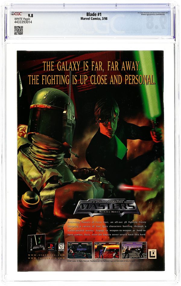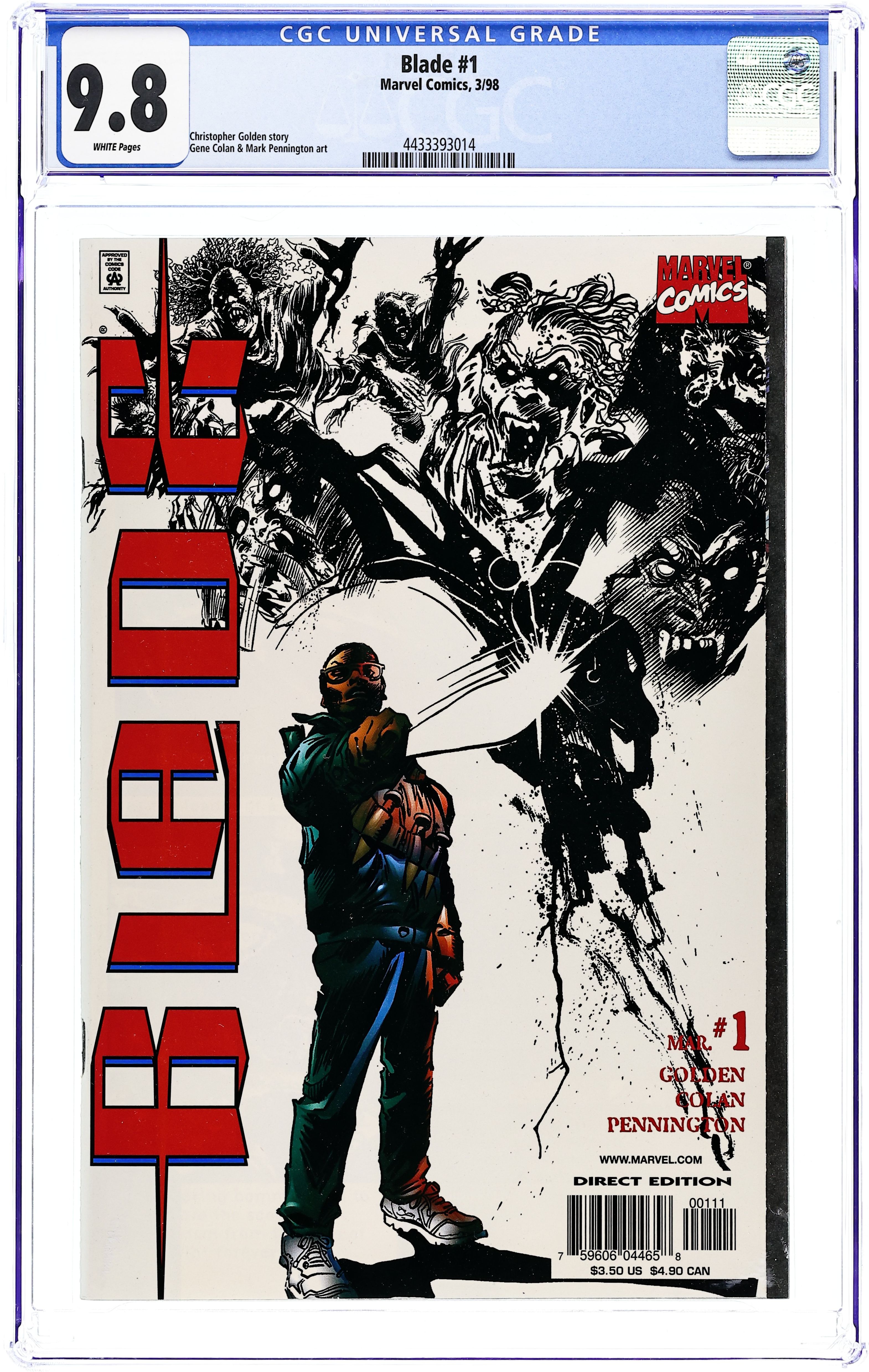 Released in conjunction with New Line's summer blockbuster film! A brutal mob massacre in 1924...a violent vampire turf war today--what links these two deadly events? The half-human, half-vampire hero known as Blade must discover the truth...and avoid the bloody crossfire! Written by Marc Andreyko. Art by Bart Sears, Mark Pennington, Randy Elliott and Ray Kryssing. Cover by Claudio Castellini. 48 pages. Cover price $5.99.