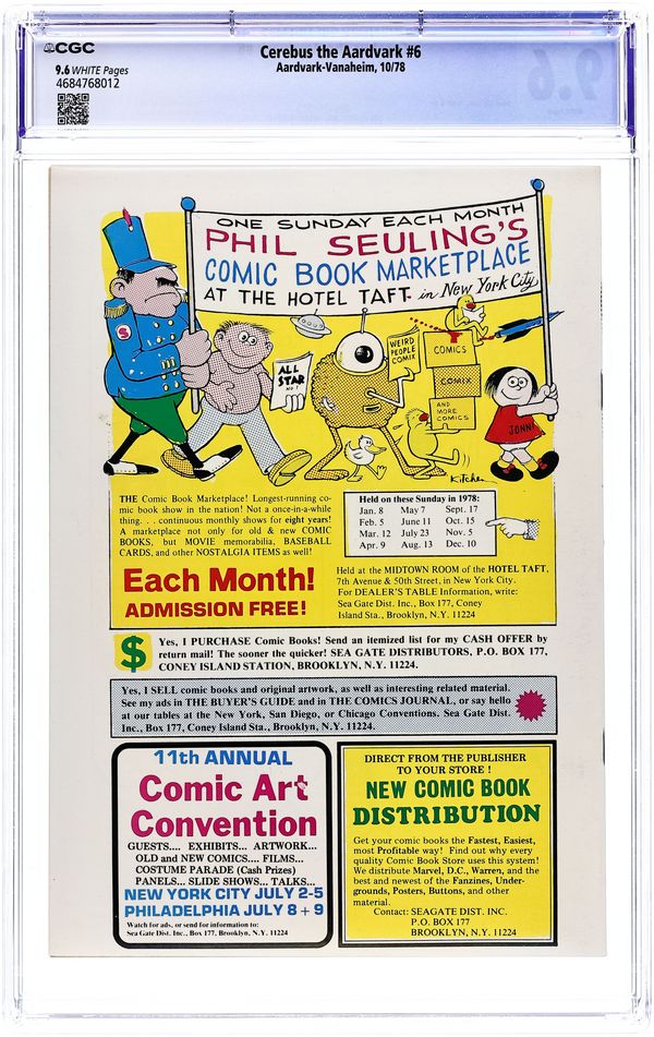 1st appearance of Cerebus. FIRST EDITION; IMPORTANT NOTE: The original and the counterfeit versions may be identified by: 1) Original: The inside cover is not glossy like the outside cover. Counterfeit: Both sides of cover are glossy. 2) In the counterfeit, inks are slightly washed out, especially noticeable in the solid black fill areas. 3) The printing quality of the counterfeit is actually better than the original, but unless you have a copy of each to compare, this will not be evident. Cover price $1.00.