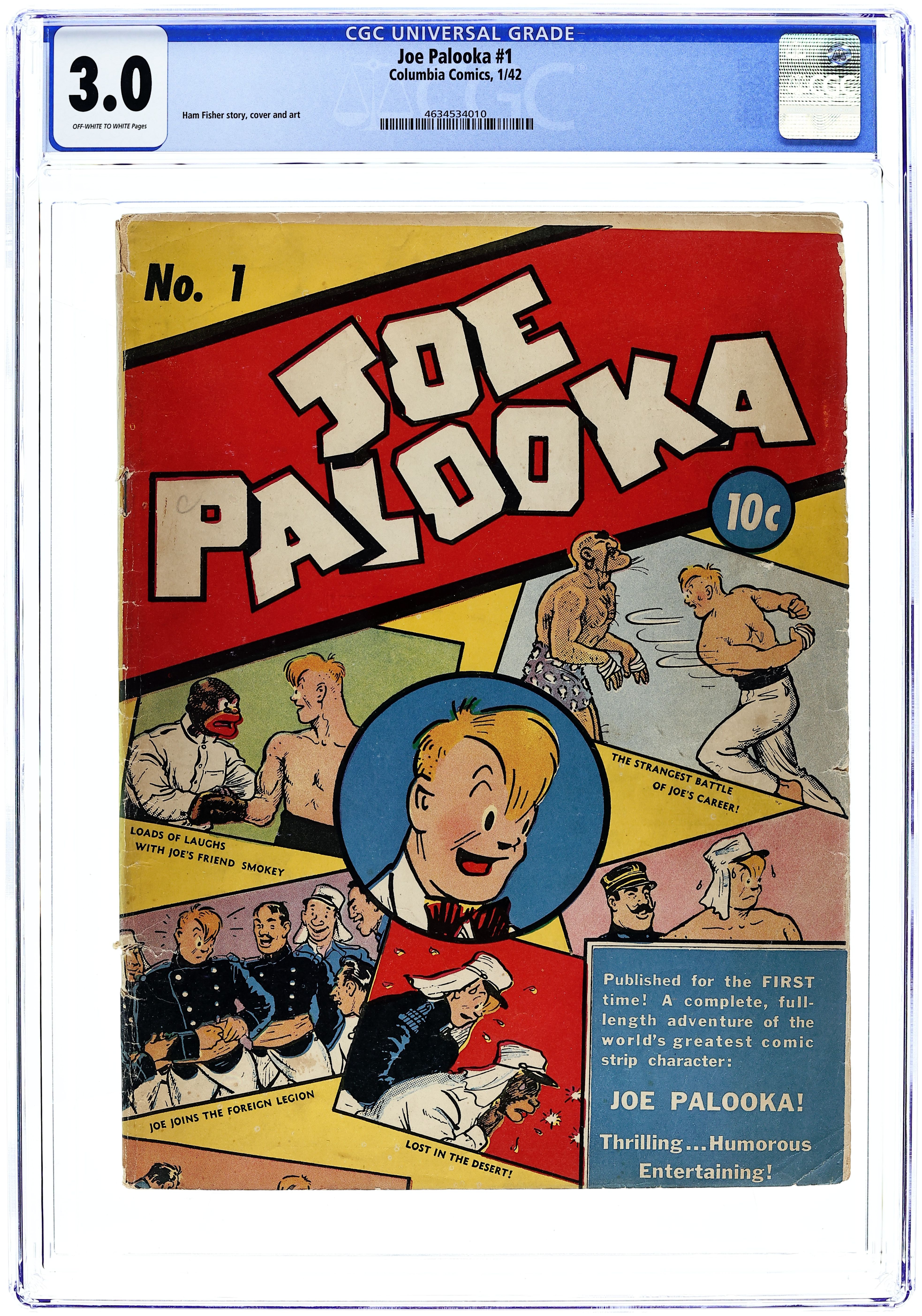 Cover by Ham Fisher. Stories and art by Ham Fisher. Columbia Comics presents the first comic-book reprints of the classic Joe Palooka comic strip, about the adventures of a good-hearted boxer. Framed by a femme fatale and stripped of his championship, Joe goes off to the desert and joins the French Foreign Legion. Lost in Arabia, Joe and Smokey are captured by a sheik, and Joe must box the champion of his hidden city. Also featuring a profile of Palooka creator Ham Fisher; a letter from Fisher about getting permission for the US president to appear in the strip; and interesting facts about Joe Palooka. 64 pages, Full Color.