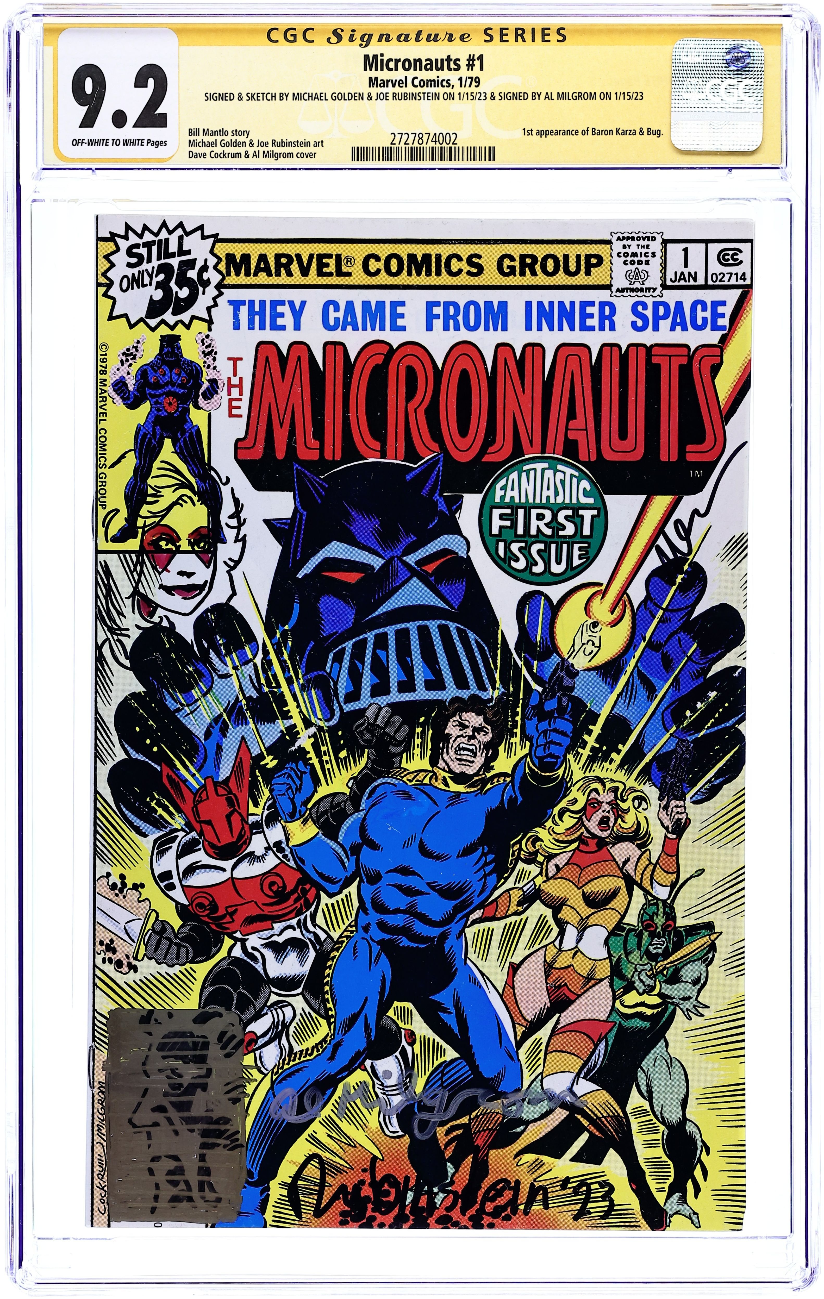 - Signed & Sketch by Michael Golden & Joe Rubenstein on 1/15/23 & Signed by Al Milgrom on 1/15/23.