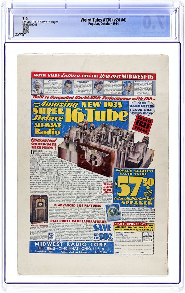 Tags: Anthology / CollectionPublished Feb 1935 by Weird Tales.$365.00- Paper: Off white to white
