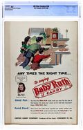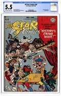 Fall 1945. The Justice Society of America star in the fable-like "The Test of Time!" Plot by Gardner Fox and Sheldon Mayer, script by Fox. Art by Joe Gallagher plus individual chapters featuring Hawkman (art by Sheldon Moldoff), Starman (art by Stan Aschmeier), Johnny Thunder (art by Aschmeier), the Atom (art by Gallagher), Dr. Mid-nite (art by Aschmeier), and the Spectre (art by Gallagher). Wonder Woman cameo. Two-page Hop Harrigan text story, "Lend-Lease for China." Tootsie Roll back cover ad, "Captain Tootsie Battles Monster Man" (art by C.C. Beck?). Frank Harry cover. 52 Pages, Full Color. Cover price $0.10.