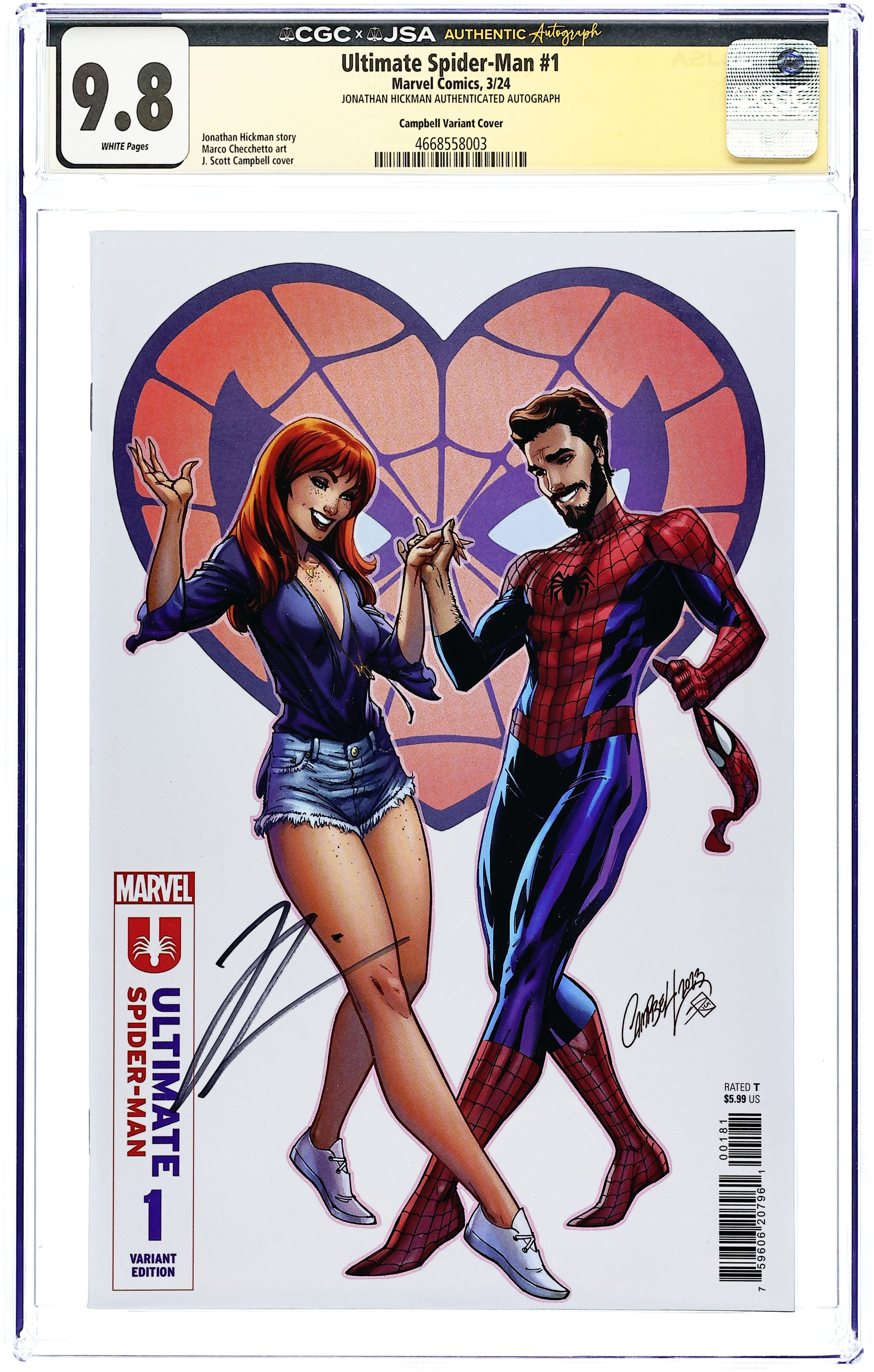 Ends Dec 29 9:40 PM CST Bid History no bids Minimum Bid $1 Your Secret Max Bid If you'd like to bid, please log in or register. Bry's Comics Exclusive Cover by Junggeun Yoon. Written by Jonathan Hickman. Art by Marco Checchetto. THE NEW ULTIMATE SPIDER-MAN FOR A NEW ULTIMATE UNIVERSE!Visionary writer Jonathan Hickman (HOUSE OF X/POWERS OF X) and acclaimed artist Marco Checchetto (DAREDEVIL) bring you a bold new take on Spider-Man, with this, the debut title of the new line of Ultimate Comics! After the events of ULTIMATE INVASION, the world needs a hero...who will rise up to take on that responsibility? Prepare to be entangled in a web of mystery and excitement as the all-new ULTIMATE SPIDER-MAN comic redefines the wall-crawler for the 21st Century! 48 pages, full color. Rated T