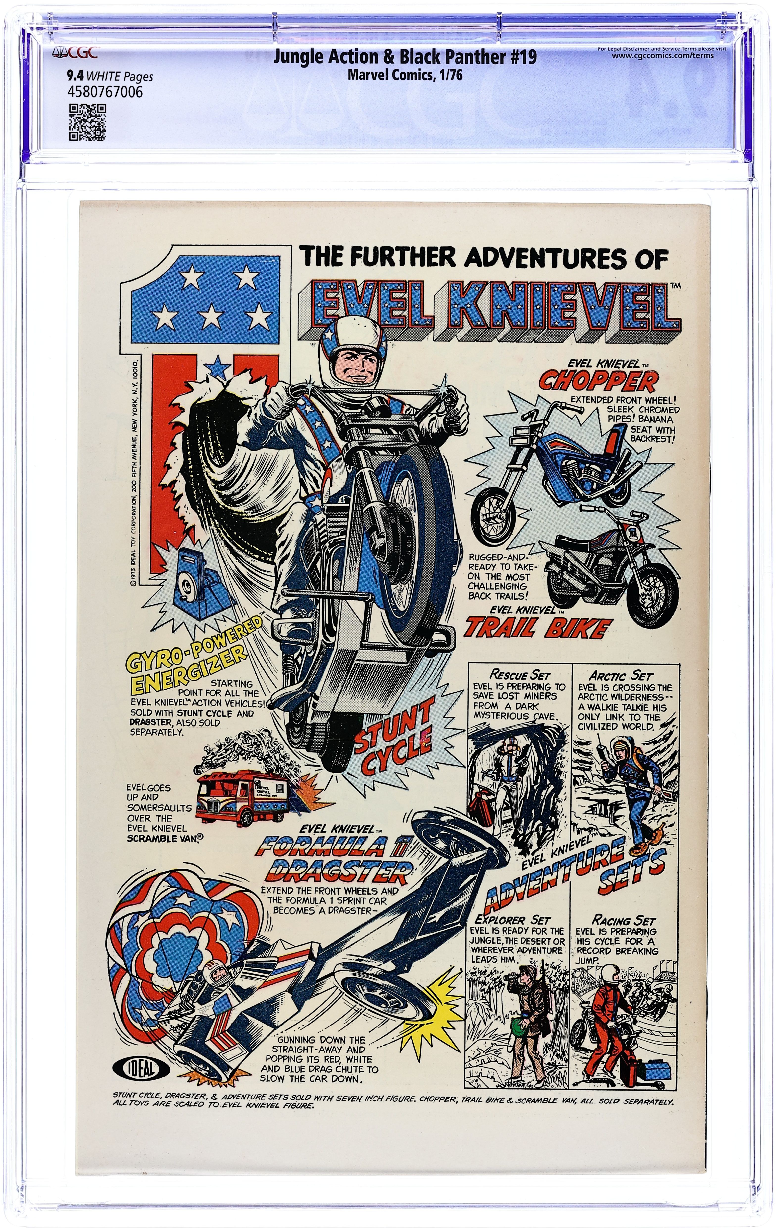 Cover pencils by Gil Kane, inks by Frank Giacoia. The Black Panther stars in Panther's Rage part 12, "Of Shadows and Rages," script by Don McGregor, pencils by Billy Graham, inks by Billy Graham and Virgilio Redondo (uncredited); Killmonger invades Central Wakanda with his army, his assassins, and his dinosaurs; The Panther meets him at Warrior Falls; Just as Killmonger is prepared to kill the Panther, Kantu pushes Killmonger over the falls. 36 pgs., full color. Cover price $0.25.