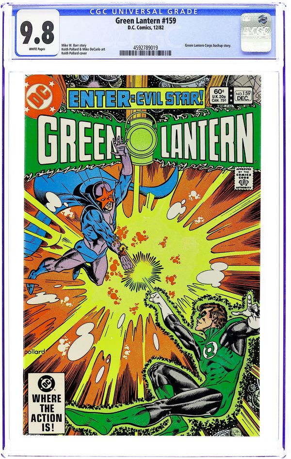 Newsstand Edition. "Decent Exposure." After revealing his Green Lantern identity, John Stewart battles Sonar. Script by Steve Englehart, pencils by Joe Staton, inks by Bruce Patterson. "Mogo Doesn't Socialize." A warrior looking to fight a Green Lantern battles Mogo, only to regret it. Script by Alan Moore, art by Dave Gibbons. Cover by Staton and Patterson. Cover price $0.75.