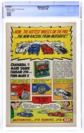 Cover pencils by Carmine Infantino and Bob Kanigher (cover design), inks by Joe Kubert. Origin and first appearance of Barry Allen, the Silver Age Flash in "Mystery of the Human Thunderbolt!", script by Robert Kanigher, pencils by Carmine Infantino, inks by Joe Kubert; By a freak accident involving lab chemicals and lightning, Barry Allen becomes the fastest man alive and originates a costume based on the comic adventures of the Flash from the 1940's; And it's a good thing too: for he must now face the Turtle Man, termed "The Slowest Man Alive." This is the first DC Silver Age super-hero, and this issue begins the Silver Age of comics. "Fastest Creatures on Earth!" article about animals. "The Man Who Broke the Time Barrier!", script by John Broome, pencils by Carmine Infantino, inks by Joe Kubert; The criminal Mazdan was tried for his crimes and sentenced to be sent to a future time period where he could harm nobody but was accidentally sent backwards to the 20th century, where he is captured by the Flash. "100-Yard Dash" article. 36 Pages, Full Color. Cover price $0.10.