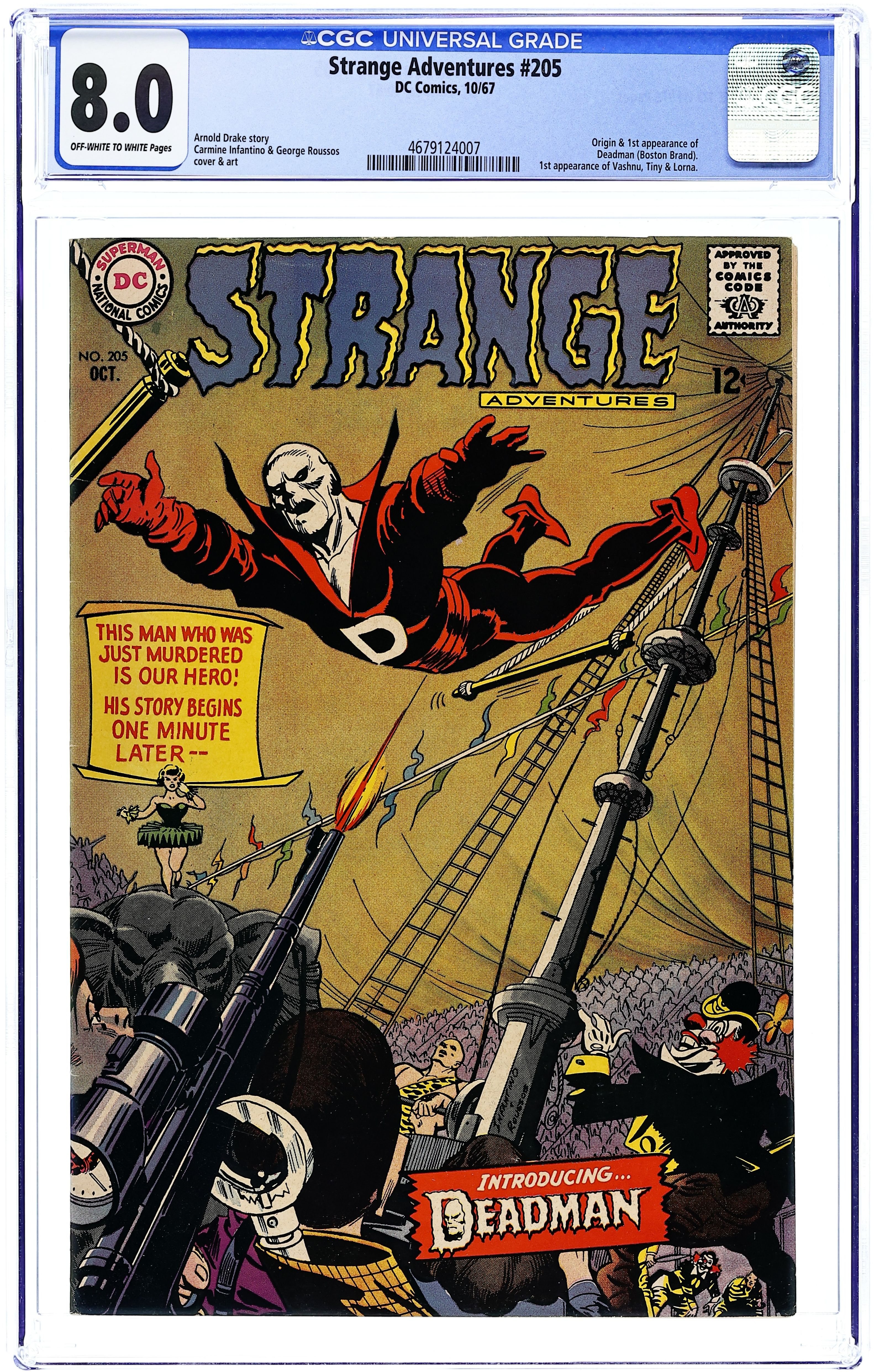 1st appearance of Deadman in "Who Has Been Lying in My Grave?" Script by Arnold Drake, pencils by Carmine Infantino. Back-up story: "War of the Mind Readers!" Infantino/George Roussos cover. 36 Pages, Full Color. Cover price $0.12.