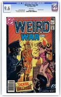 Newsstand Edition. Cover art by Joe Kubert. One page of art by Romeo Tanghal. The Creature Commandos!, script by J. M. DeMatteis, pencils by Pat Broderick, inks by John Celardo; set during World War II. Ultimate Weapon, script by George Kashdan, pencils by Denys Cowan, inks by John Celardo; set sometime in the future. Rising Sun, script by Mike W. Barr, by Noly Zamora; set in the early 1940s in a Japanese-American relocation camp during World War II. Life Hangs by a Thread, script by Carl Wessler, pencils by Vicente Alcazar, inks by Vicente Alcazar; set in 1942 in the Pacific Theater during World War II. 36 pgs. $0.50. Cover price $0.50.