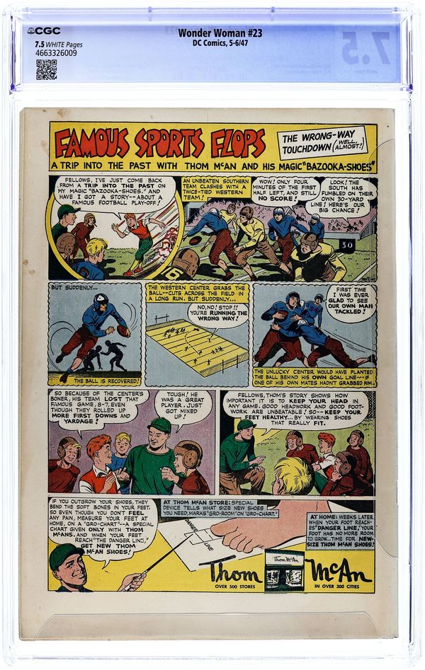 Cover by Harry G. Peter. "Evolution Goes Haywire," script by William Moulton Marston (as Charles Moulton), art by Harry G. Peter; When Steve Trevor's niece is kidnapped by a gorilla, Wonder Woman captures the Gorilla and turns her over to Professor Zool, who uses his evolution machine to turn her human. "The Freed Captive," script by William Moulton Marston (as Charles Moulton), art by Harry G. Peter; Professor Zool's machine advances everyone to the Golden Age of Greece, but Giganta introduces evil and brings the Golden Age to an end. "Death Stalks the Convoy" text story starring Hop Harrigan / text story. Untitled story, script by William Moulton Marston (as Charles Moulton), art by Harry G. Peter; The Evolution machine brings them to Amazonia before Diana was born. Back cover Tootsie Roll ad, "Captain Tootsie and the Secret Weapon" by Rod Reed and C.C. Beck. 52 Pages, Full Color. Cover price $0.10.