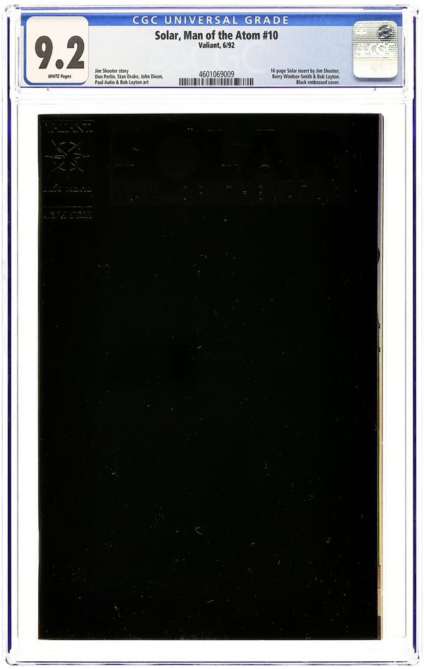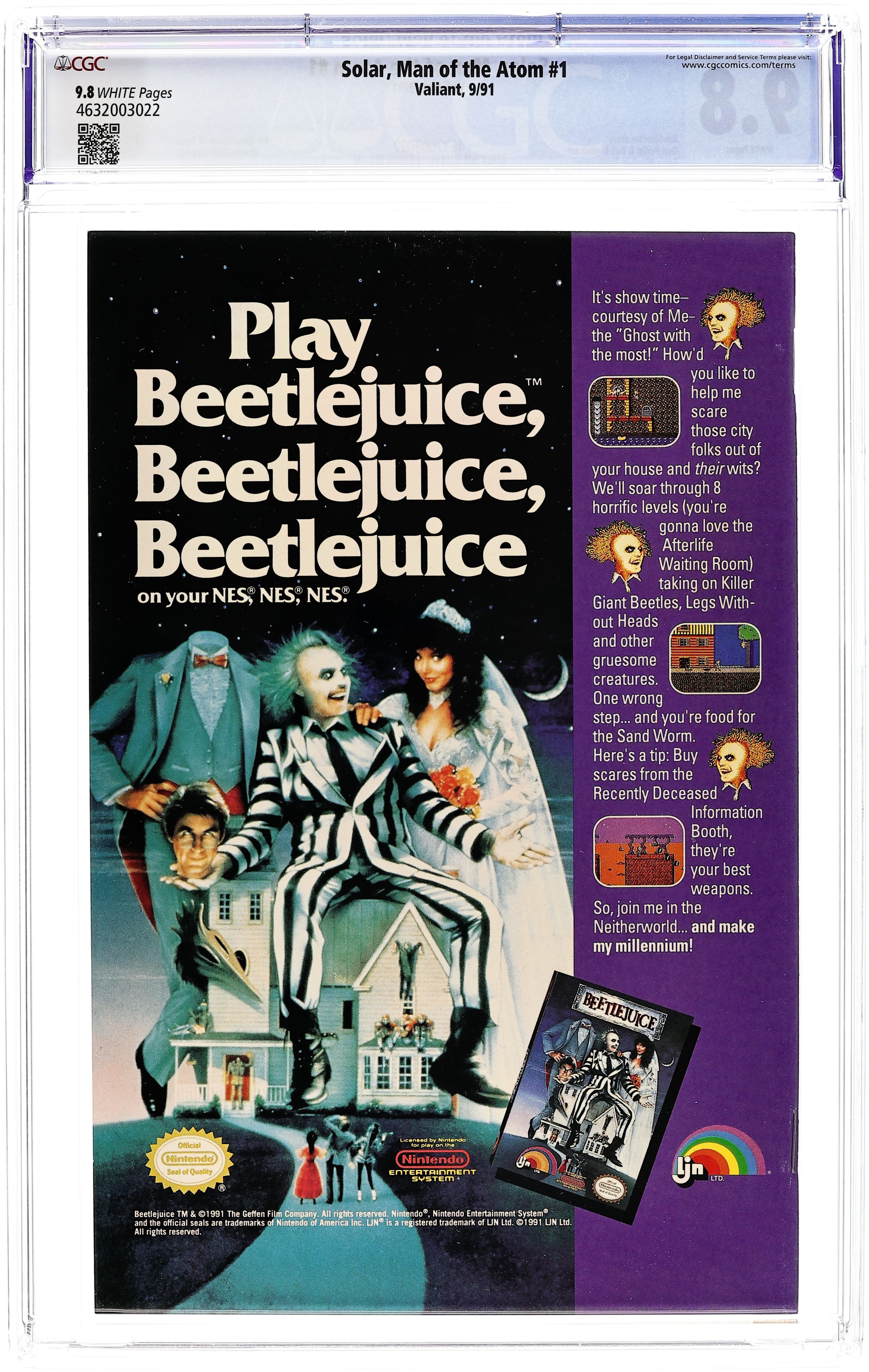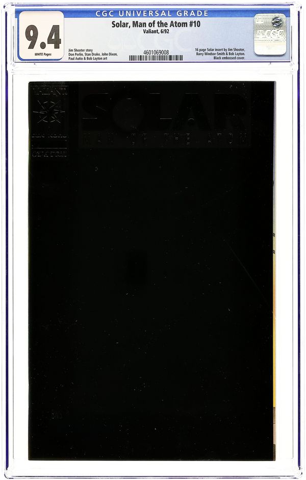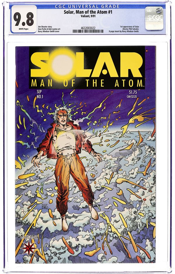 Dr. Solar Man of the Atom tries to find a place in the world for someone like himself and goes to the Harbinger Foundation in "Second Death Part Three – Reality Check." Script by Jim Shooter and art by D. David Perlin & Bob Layton & Thomas Ryder. Issue also has part three of "Alpha and Omega," a 10-part origin story of Solar Man of the Atom with script by Jim Shooter and art by Barry Windsor-Smith and Bob Layton. Each chapter of the origin story has a two-page pinup. When all 10 two-page pinups are put together, they form a gigantic page of the climax of the origin story. Cover by Barry Windsor Smith. This issue does not have a card (coupon). Cover price $1.75.