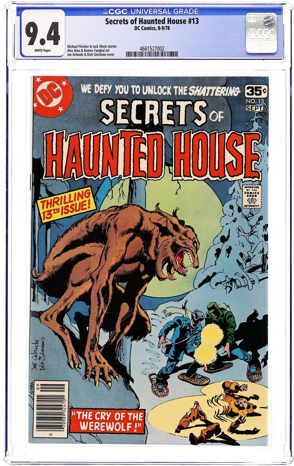 Featuring: 1 page Destiny introductory story "Secrets of Haunted House" drawn by Romeo Tanghal; 10 page Destiny story "The Cry of the Werewolf!" written by Mike Fleisher and drawn by Alex Nino; 6 page Destiny story "A Nice Place to Die" written by Jack Oleck and drawn by Douglas Aleskey (as Douglas Aleksey) & Wayne Howard; half page DC Profiles #36: Gerry Conway (biography). Cover by Joe Orlando and Dick Giordano. Cover price $0.35.