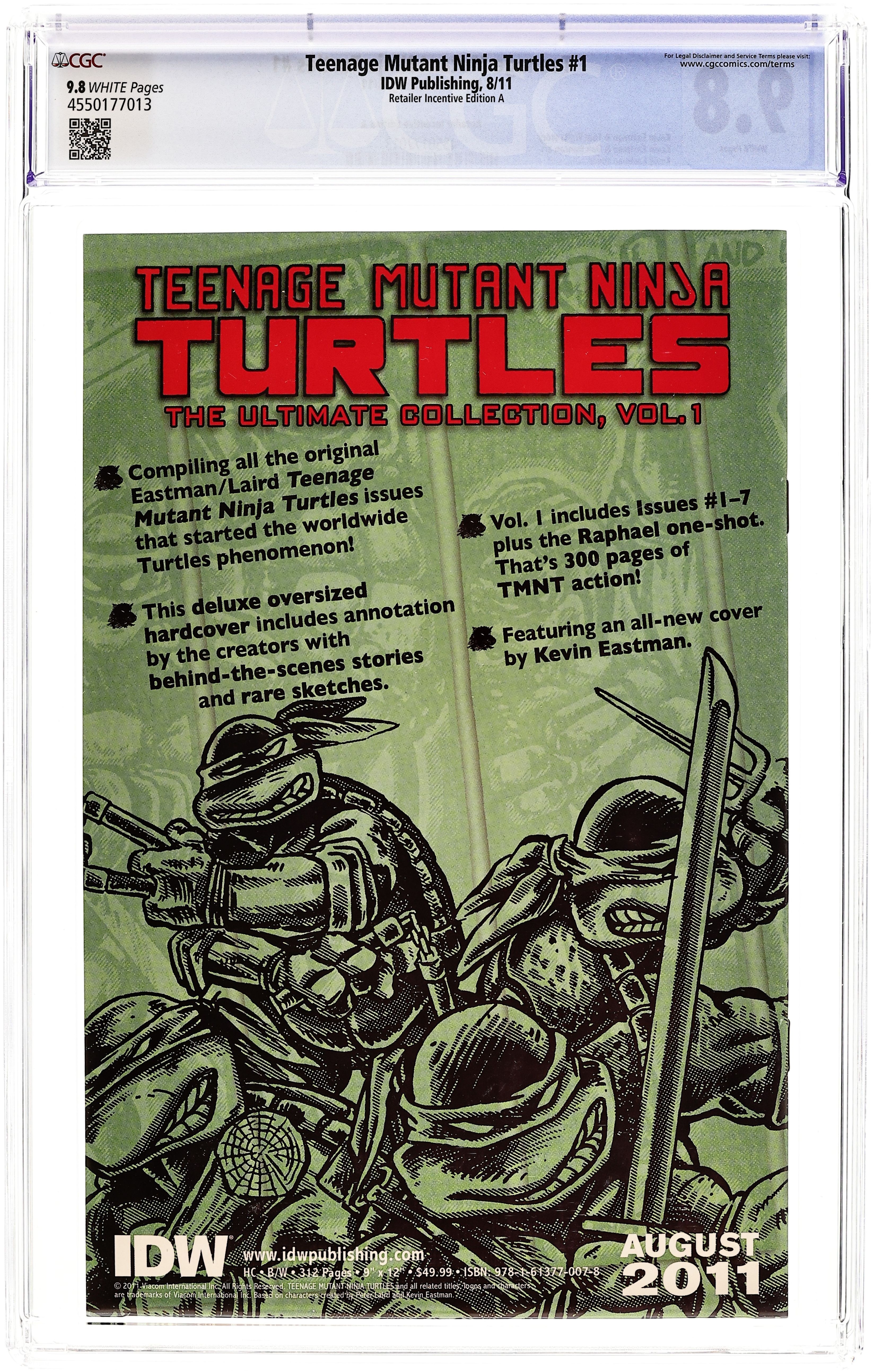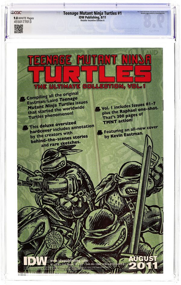 Published Aug 2011 by IDW Publishing.Teenage Mutant Ninja Turtles (2011 IDW) 1RI.A CGC 9.8 Eastman 1:10 Variant