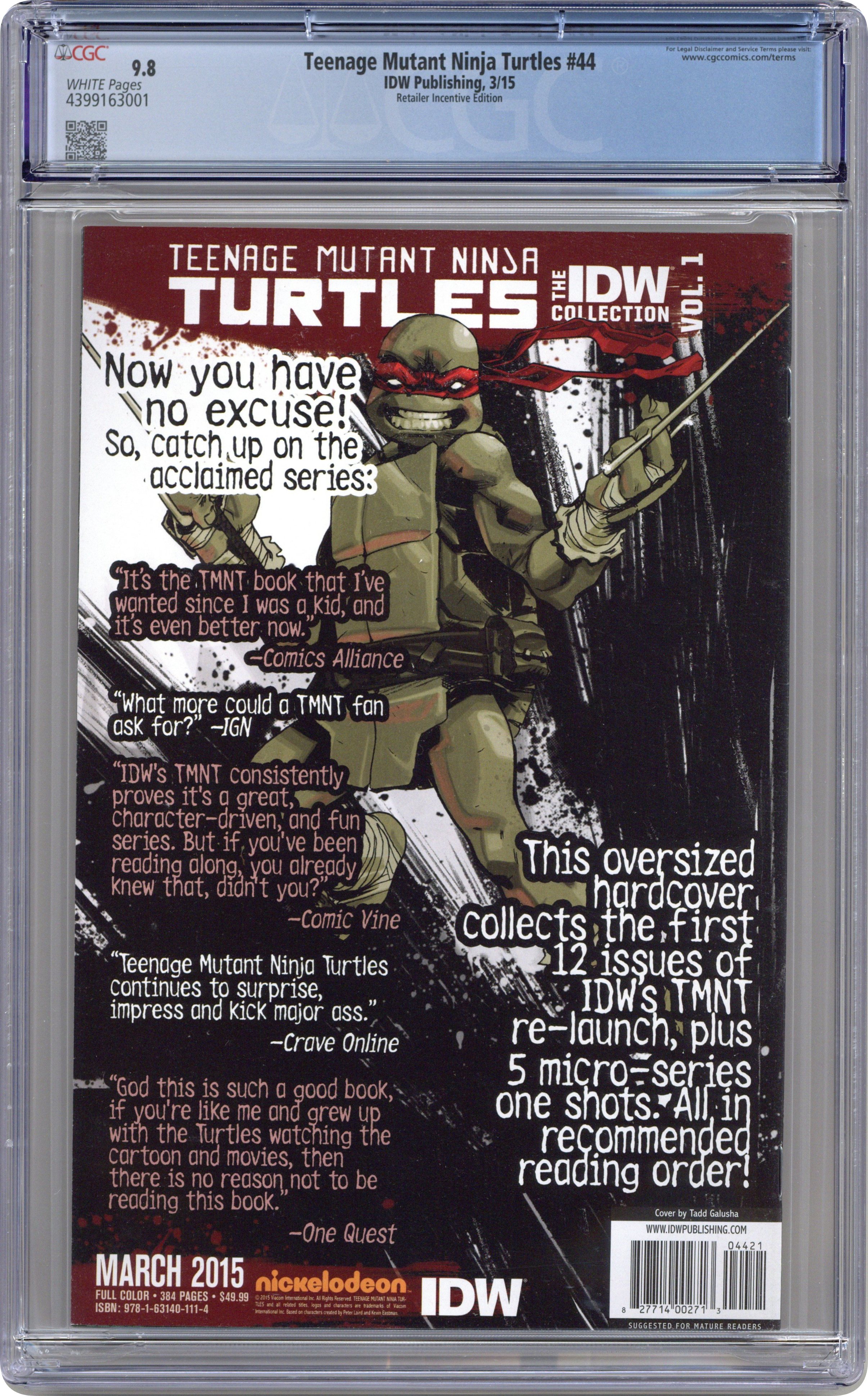 Published Mar 2015 by IDW Publishing.Teenage Mutant Ninja Turtles (2011 IDW) 44RI CGC 9.8
