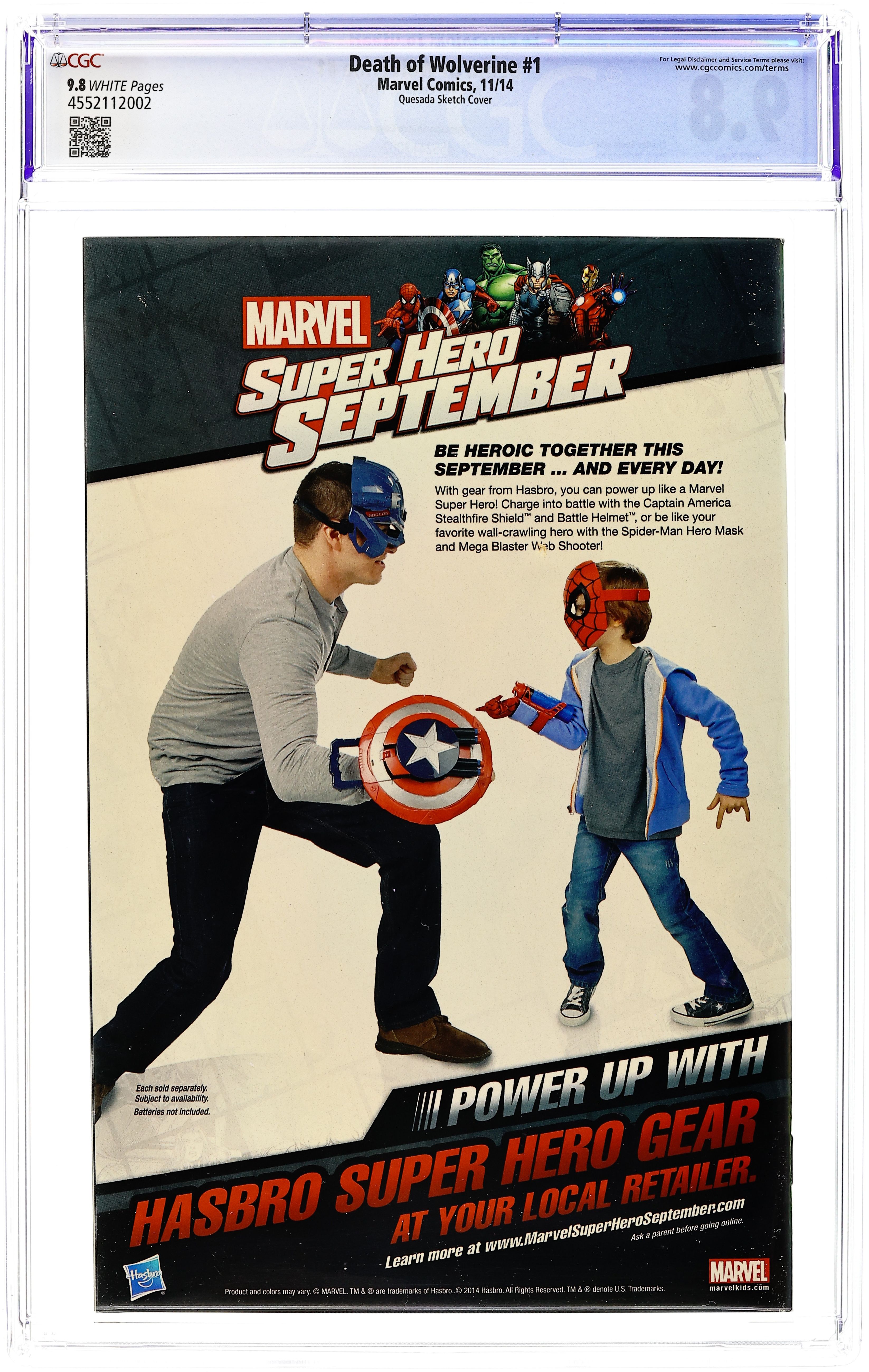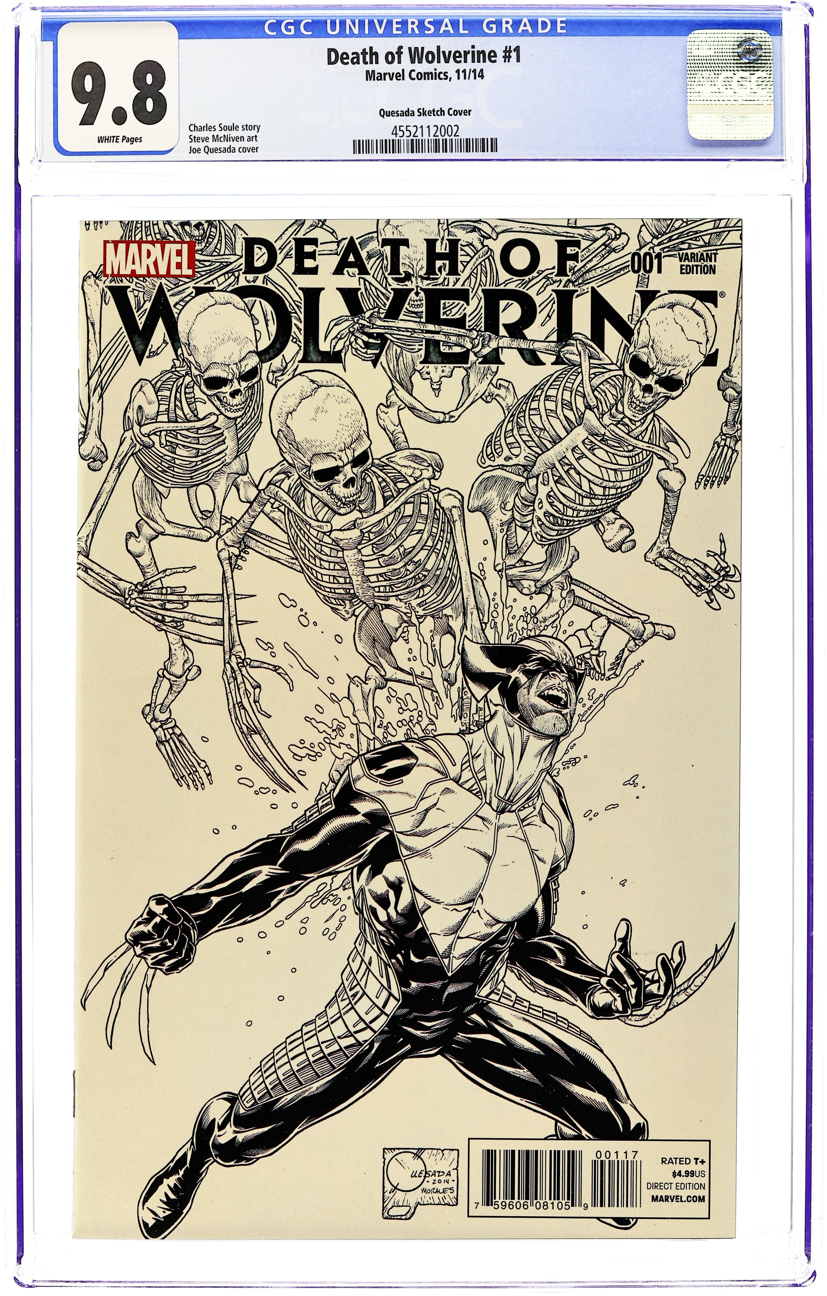 Limited 1 for 500 Retailer Incentive Sketch Variant Cover by Joe Quesada. Written by Charles Soule. Art by Steve McNiven. IT'S THE BEGINNING OF THE END - 3 MONTHS TO DIE ENDS HERE! The beginning of the end is now here ... THE DEATH OF WOLVERINE! THREE MONTHS TO DIE, the loss of Wolverine's healing factor--all led to this, the single most important X-Men event of the decade. Logan has spent over a century being the best there is at what he does...but even the best fade away eventually. Over the years, Logan has been a warrior, a hero, a renegade, a samurai, a teacher-and so much more. But now, the greatest X-Men hero will play a role he's never played before in this special weekly event. 56 pages, full color. Cover price $4.99.