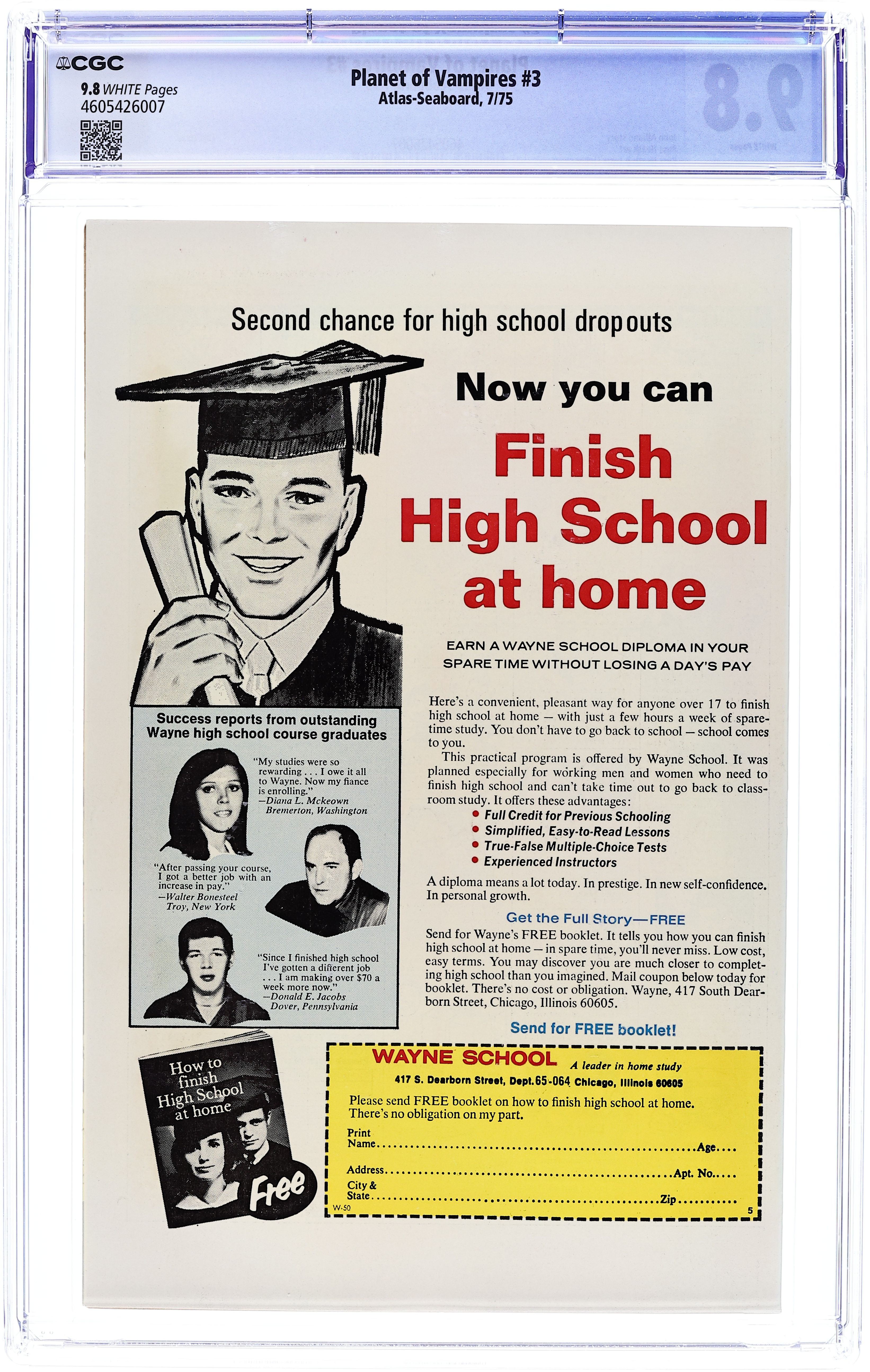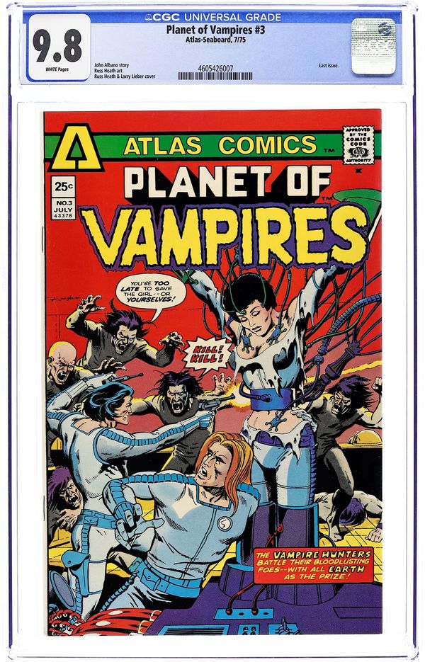 The astronauts mount a desperate assault on the domed city of the vampires. Part of the short-lived Atlas science fiction line from former Marvel publisher Martin Goodman. Final issue of the series. Written by John Albano, with art by Russ Heath. 32 pages. Cover by Heath and Larry Lieber. Cover price $0.25.