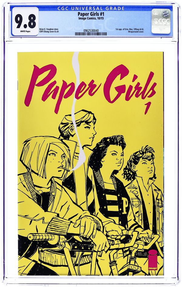 Written by Brian K. Vaughan. Art and Cover by Cliff Chang. In the early hours after Halloween of 1988, four 12-year-old newspaper delivery girls uncover the most important story of all time. Stand By Me meets War of the Worlds in this mysterious young adult adventure! 48 pages, full color. Rated T+ Cover price $2.99.