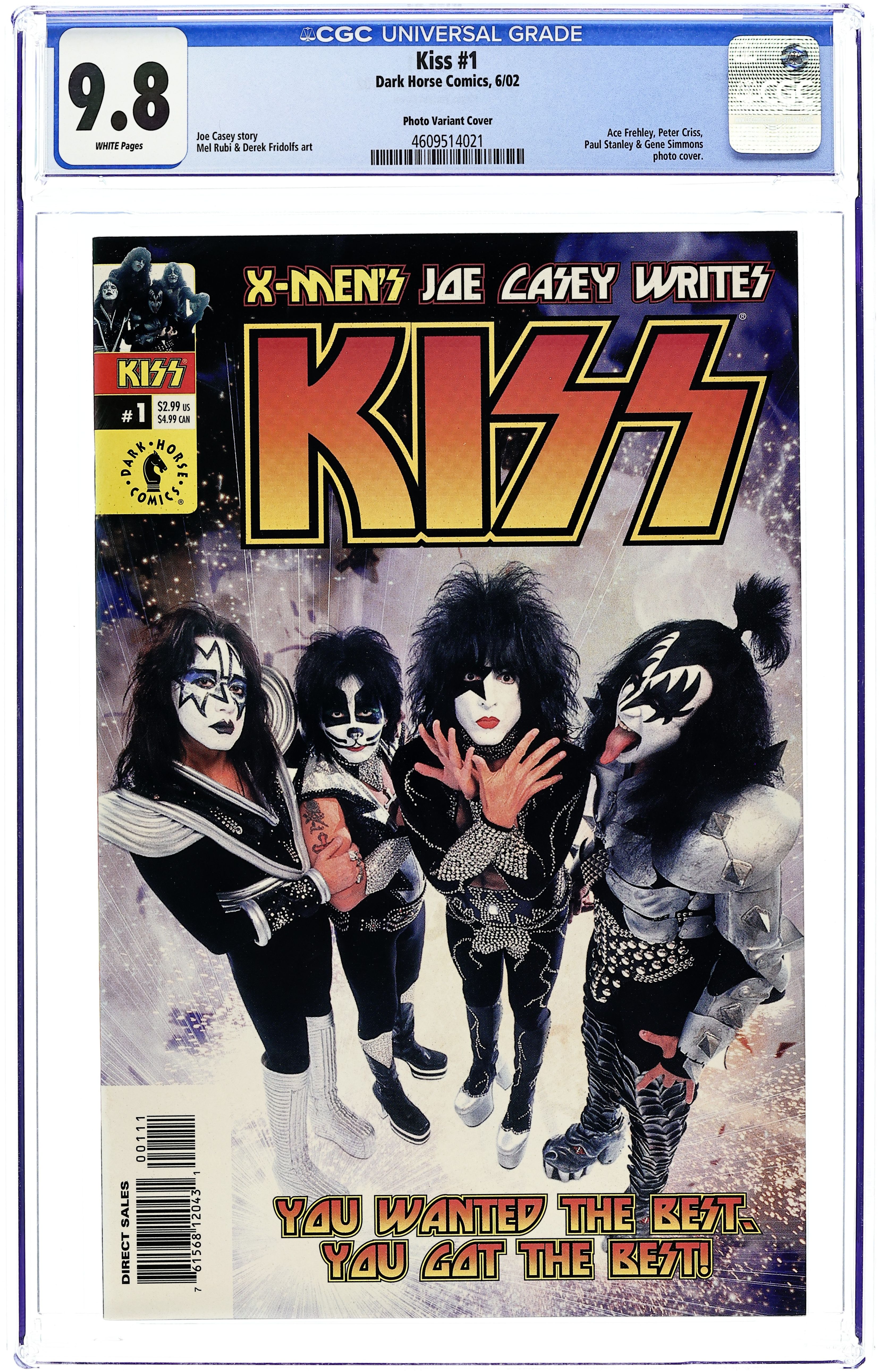 by JOE CASEY and MEL RUBI; cover by J. SCOTT CAMPBELL The most ass-kicking rock band returns to comics, written by the most rockin' of young comics writers. Joe Casey (Superman, Wildcats, X-Men) presents a bold new direction for Kiss ? years after the split-up of these four super-powered warriors, they've followed very separate paths. The Demon is a bounty hunter; The Starchild lives with a race of women warriors in South America; The Spaceman is cruising the solar system with no human contact; and The Catman's getting in touch with his bestial side. When Catman finally goes too far, the others know they have to band together to save the Catman's humanity. But there's another hand at work, pushing the Four Who Are One into a corner. This new comic, overseen by Gene Simmons, turns the ultimate rock-and-roll icons into the ultimate superhero team. Joe Casey, who's dealt with every kind of super power, to the delight of mainstream fans, gives Dark Horse a superhero book to rival any. Mel Rubi, hot off the superhero-style revamp of Joss Whedon's Angel, reinterprets Kiss with a dynamism rivalled only by their stage show, and J. Scott Campbell (Danger Girl) and Leinil Francis Yu (X-men, High Roads) trade off cover duties. This ain't your daddy's comics ... On sale July 24 FC, 32pg (1 of 3) (Art cover) . . . $2.99 FC, 32pg (1 of 3) (Photo cover) . . . $2.99 Cover price $2.99.