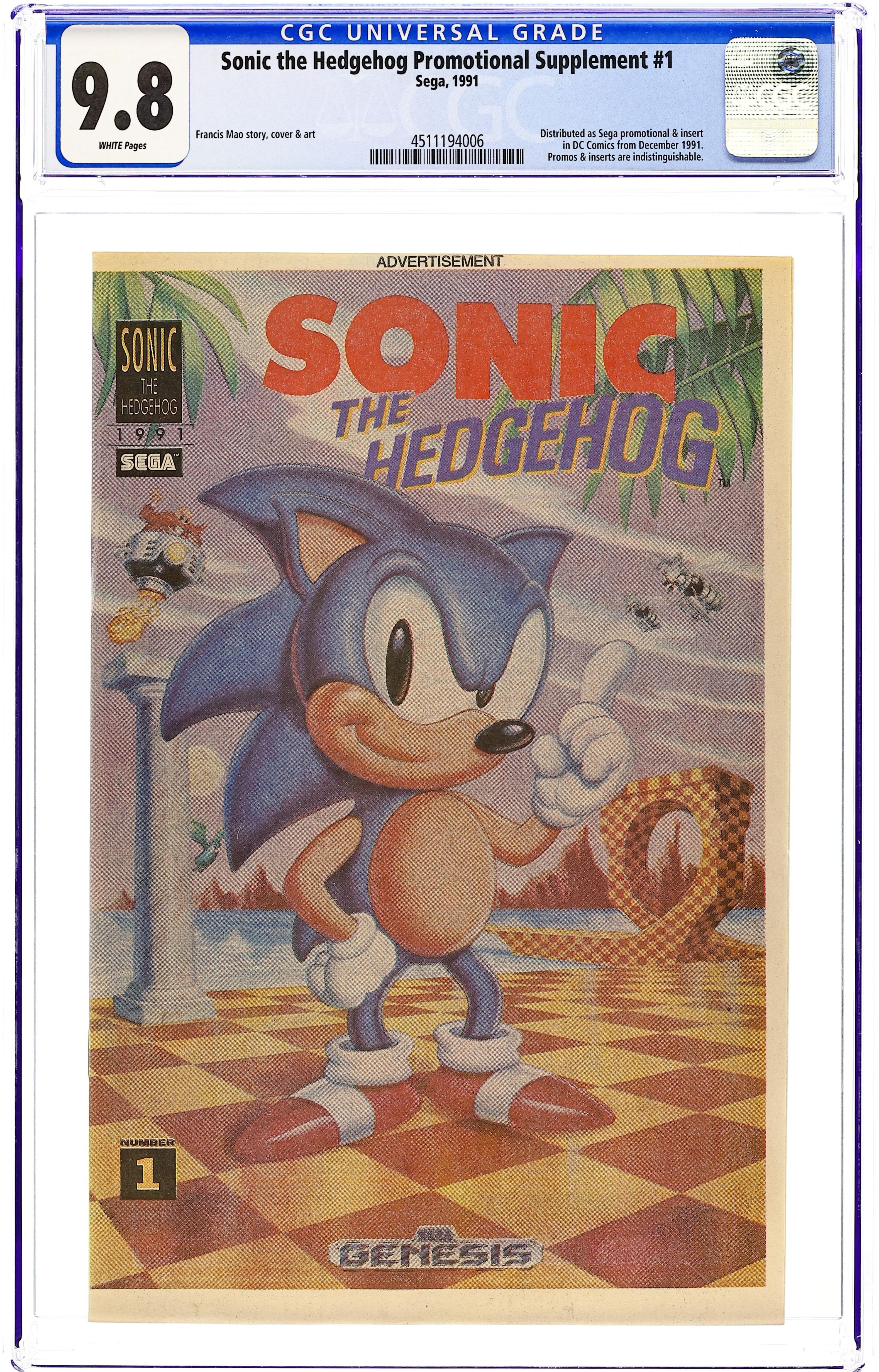 Tags: PromotionalSonic the Hedgehog (1991 Sega) 1NEWSPRINT CGC 9.8 Newsprint Variant