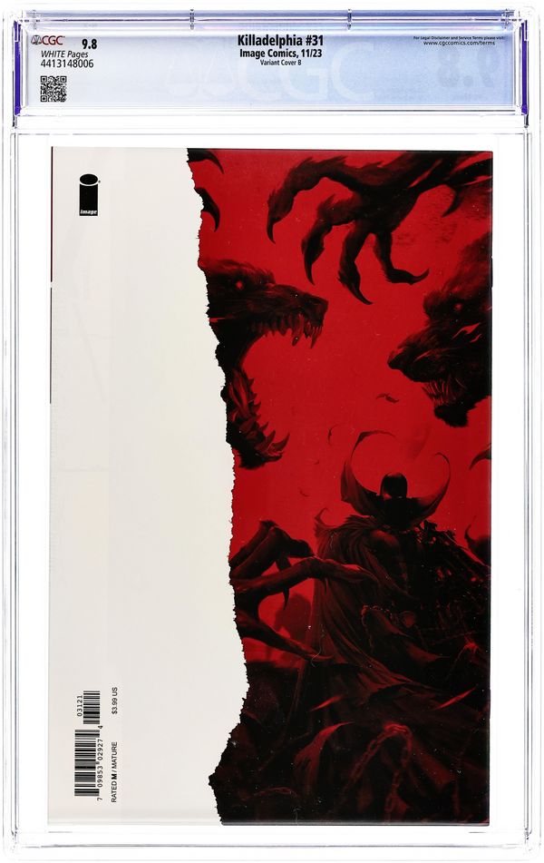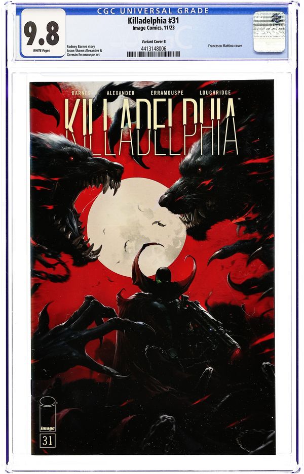 Written by Rodney Barnes. Art by Jason Shawn Alexander, German Erramouspe. Cover by Francesco Mattina. NEW STORY ARC Enter SPAWN! The forces of Heaven and Hell clash on the battleground that is Philly and weave into the tapestry of a larger universe when TODD McFARLANE's greatest creation crosses over into the pages of KILLADELPHIA! All the power SeeSaw has gained and all the magic he's learned will be put to the test when he faces off against comics' greatest anti-hero! Anything can happen in this bold jumping-on point for new readers that will redefine the KILLADELPHIA universe as we know it. The sold-out, Eisner Award-nominated series continues! From RODNEY BARNES, the writer behind such hit shows as Marvel's Runaways and STARZ's American Gods, and JASON SHAWN ALEXANDER, the artist who redefined SPAWN. This issue also contains a backup story featuring Hell's Baddest Badass: Johnny Gatlin. 40 pages, full color. Rated M Cover price $3.99.