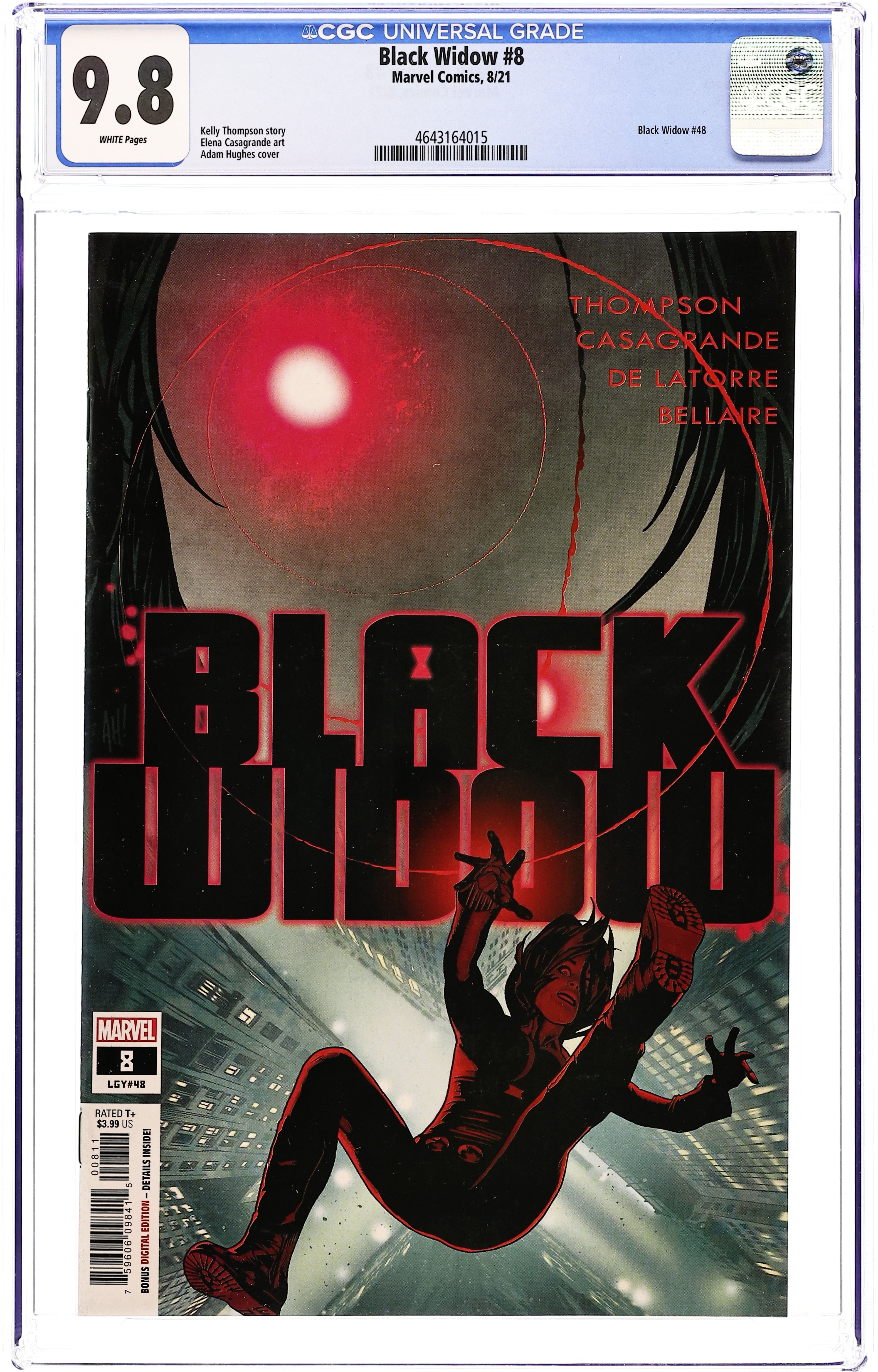 Written by Kelly Thompson. Art by Elena Casagrande and Rafael de Latorre. Cover by Adam Hughes. THE END IS ALSO THE BEGINNING… As Natasha finally begins to escape her paradise and takes aim on her enemies, she can't ignore that her freedom comes at a devastating cost. Is this what finally breaks The BLACK WIDOW? Winning the day will change Natasha forever and set her on a bold new path. Losing… is no longer an option. 28 pages, full color. Rated T+ Cover price $3.99.