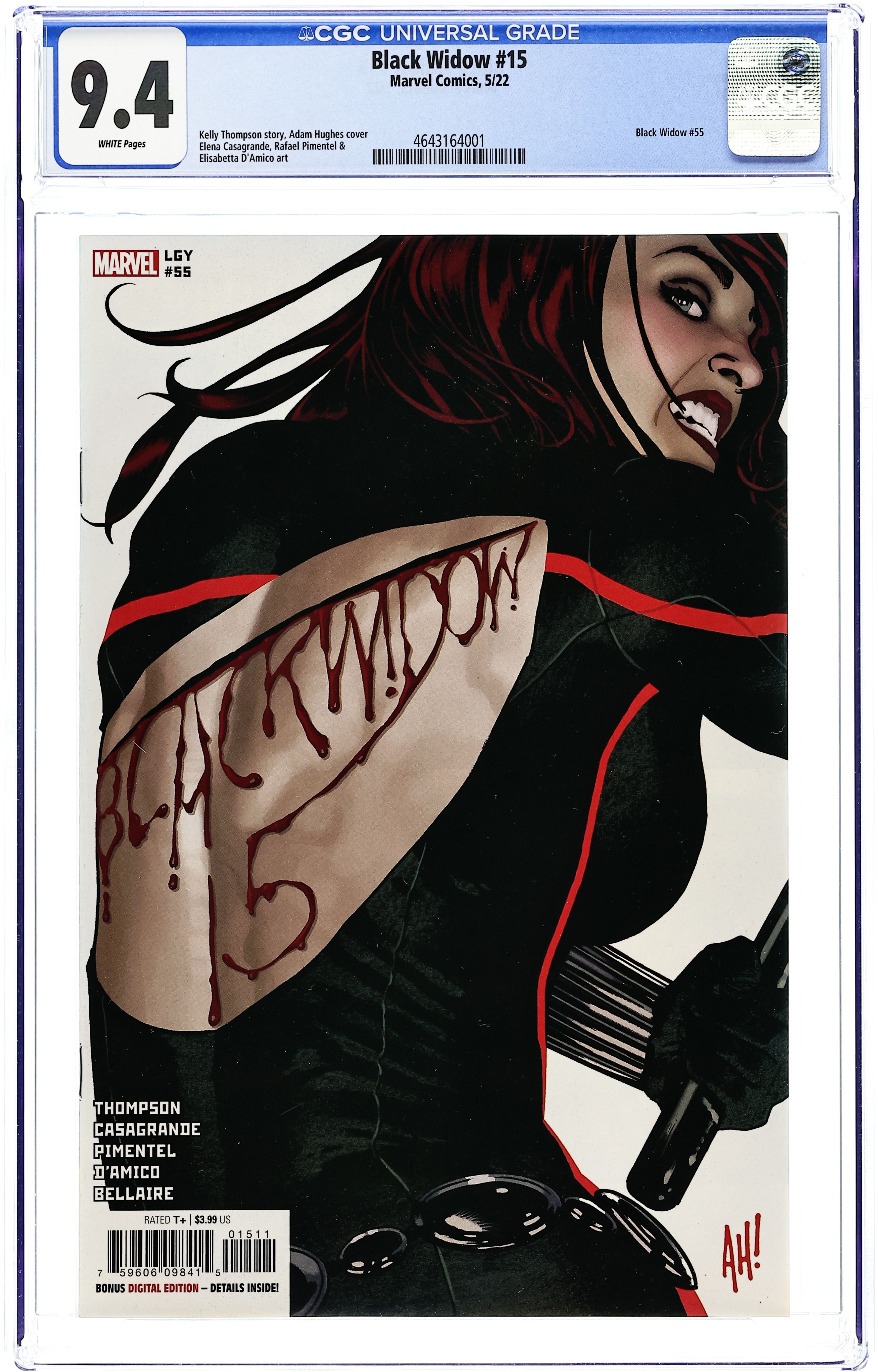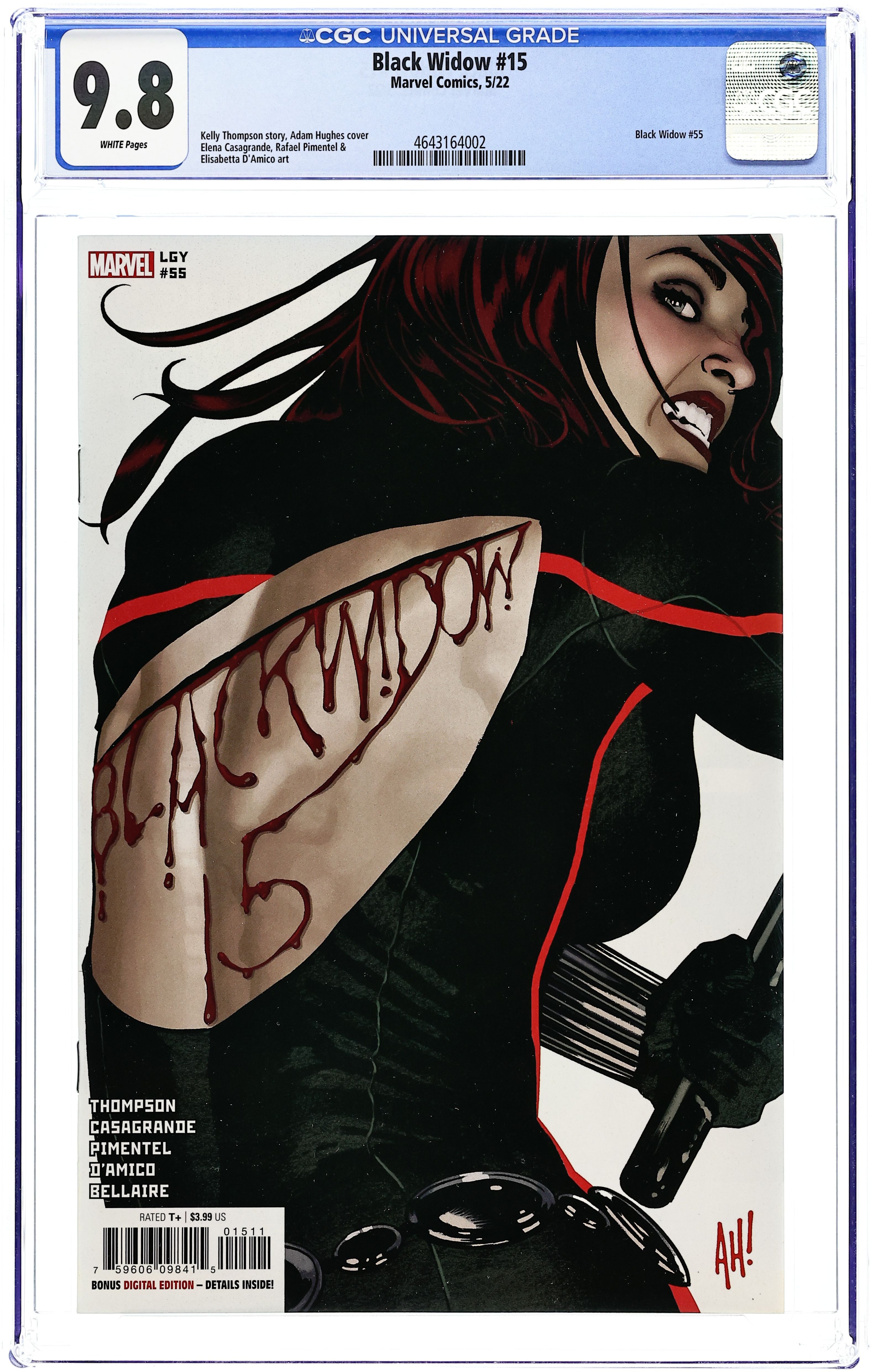 Written by Kelly Thompson. Art by Elena Casagrande. Cover by Adam Hughes. THE EISNER-WINNING SERIES BRINGS YOU A VILLAIN WORTH DYING FOR! Natasha Romanoff is known for having skeletons in her closet, but THE LIVING BLADE is the one skeleton she hoped she'd never encounter again. He nearly killed her the first time they tangled, years ago in Madripoor - will he finish the job this time at the bidding of THE HOST? Thompson and Casagrande reunite for Natasha's fight to save the people of San Francisco from a ruthless predator in their midst. 28 pages, full color. Rated T+ Cover price $3.99.