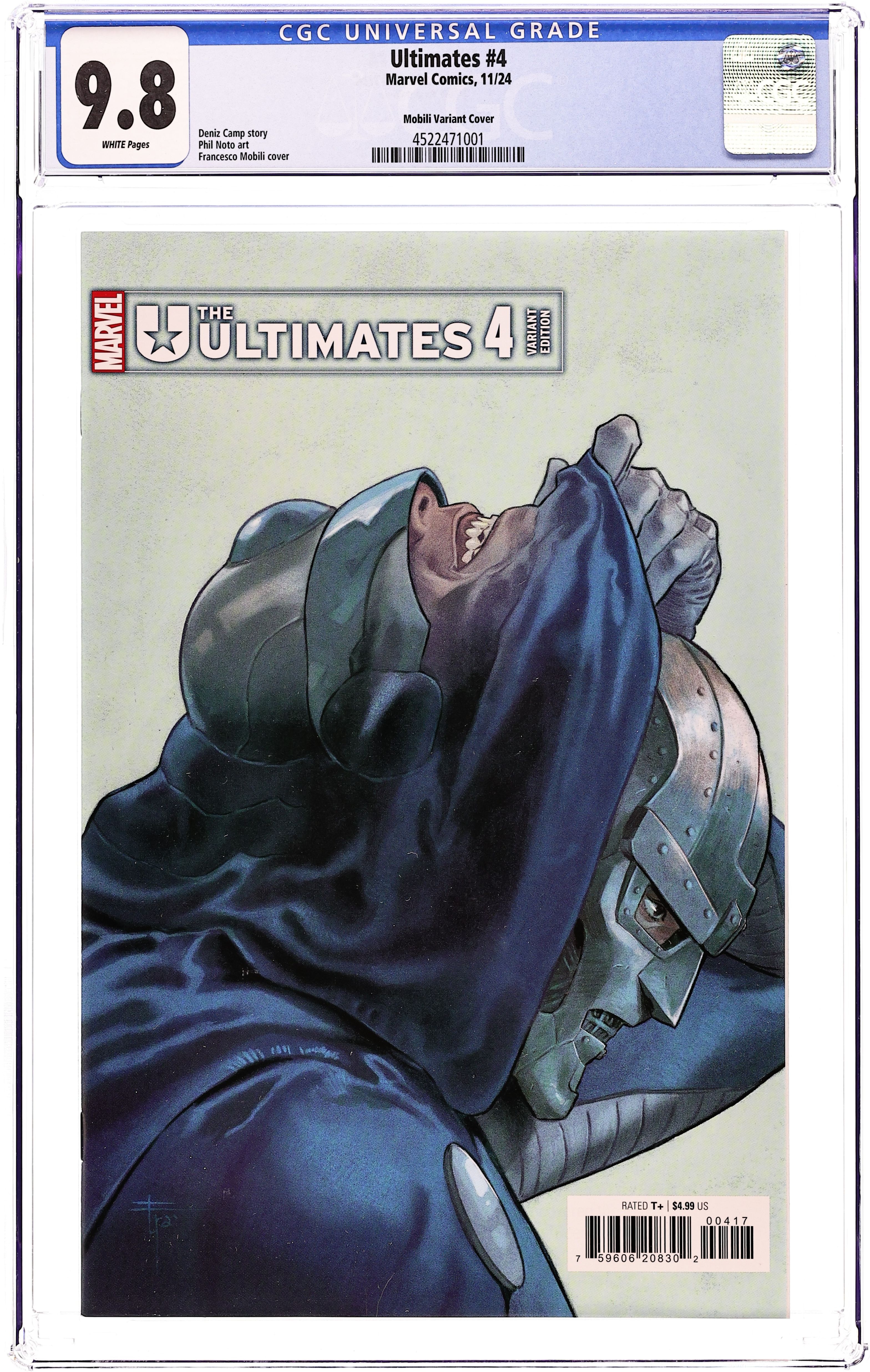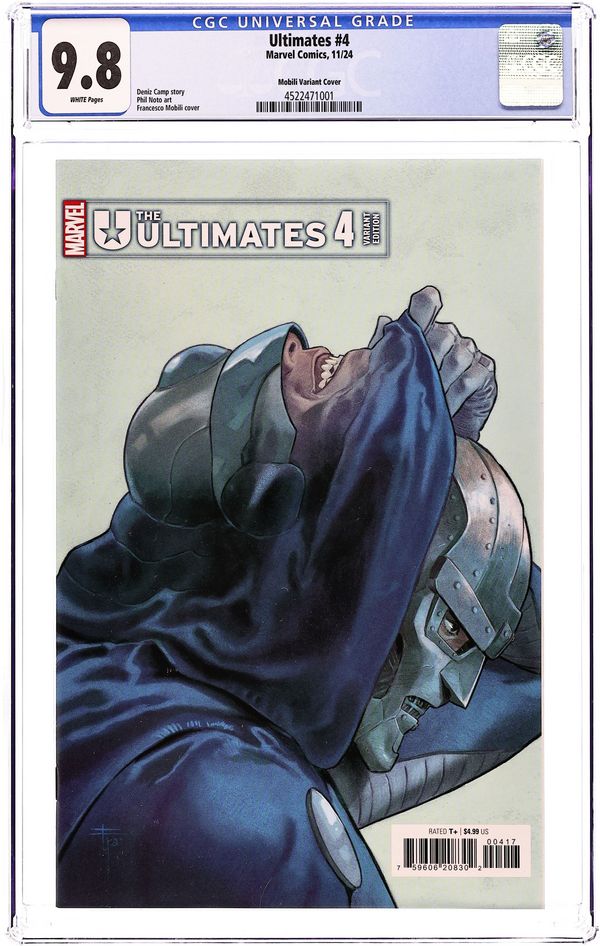 Limited 1 for 25 Retailer Incentive Variant Cover. Written by Deniz Camp. Art by Phil Noto. Cover by Francesco Mobili. THE FATE OF THE ULTIMATE FANTASTIC FOUR! Doom's years of torture at the hands of the Maker finally catch up to him in this secret history of the real Reed Richards! And tensions rise among the Ultimates when Doom might be more fixated on re-creating the life he should have had than the life he's got… 32 pages, full color. Rated T+ Cover price $4.99.