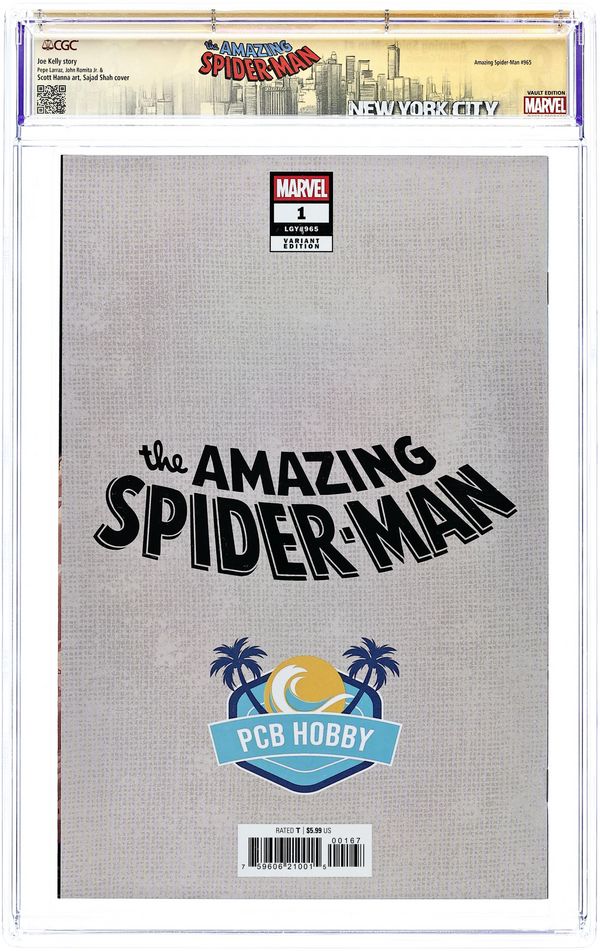 PCB Hobby Exclusive Variant Cover by Sajad Shah. Written by Joe Kelly. Art by Pepe Larraz; John Romita Jr. ALIVE & THWIPPING! The next era of AMAZING SPIDER-MAN has arrived! Peter is, shockingly, without a job and looking for gainful employment, but his job search is interrupted by a RAMPAGING RHINO who is but the tip of a sinister iceberg. What major Spider-Villain is working behind the scenes weaponizing other Spider-Villains including one we haven't seen in OVER SEVEN YEARS?! Also, what is that Goblin-free Norman Osborn up to anyway? 40 pages, full color. Rated T