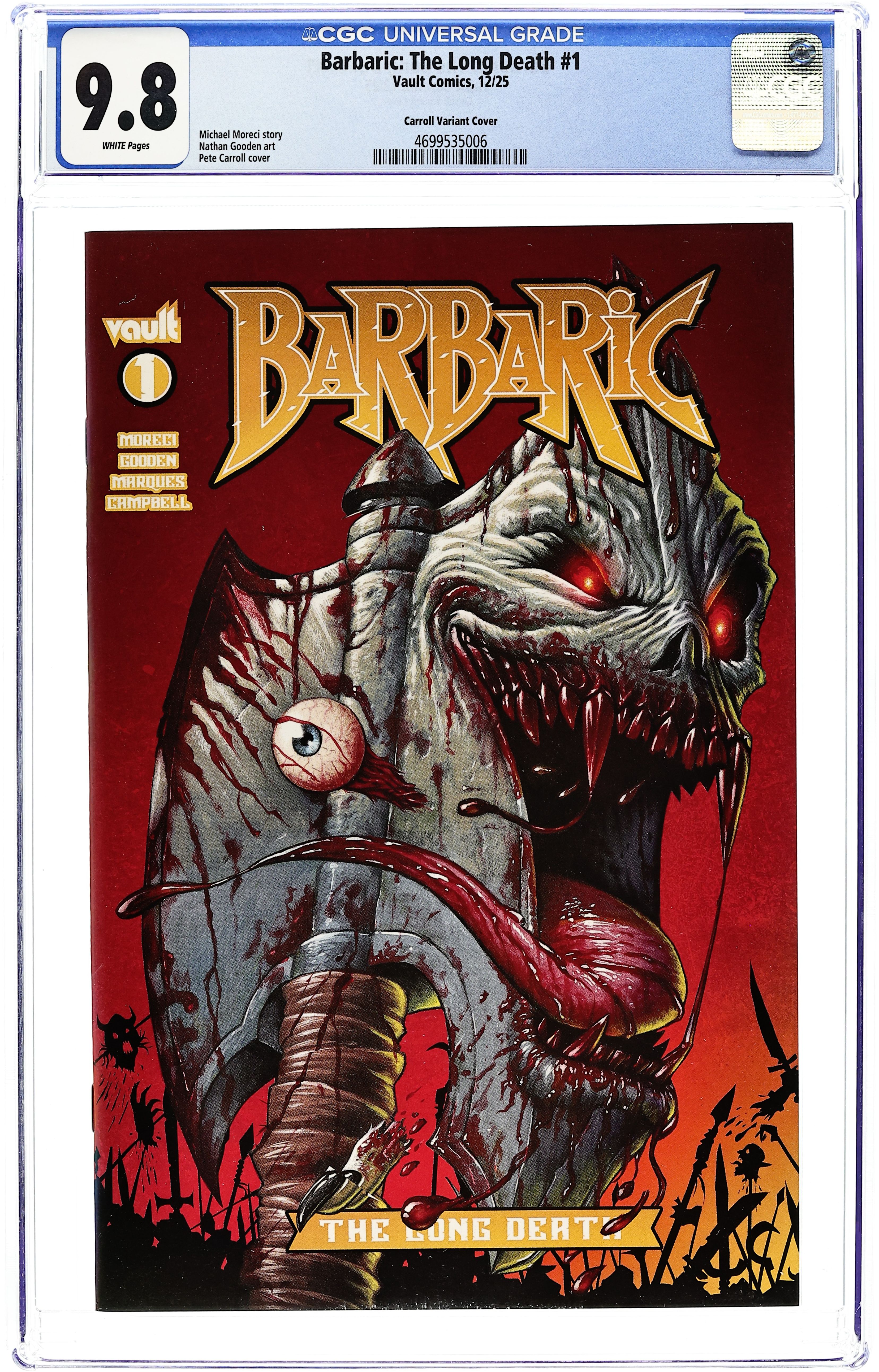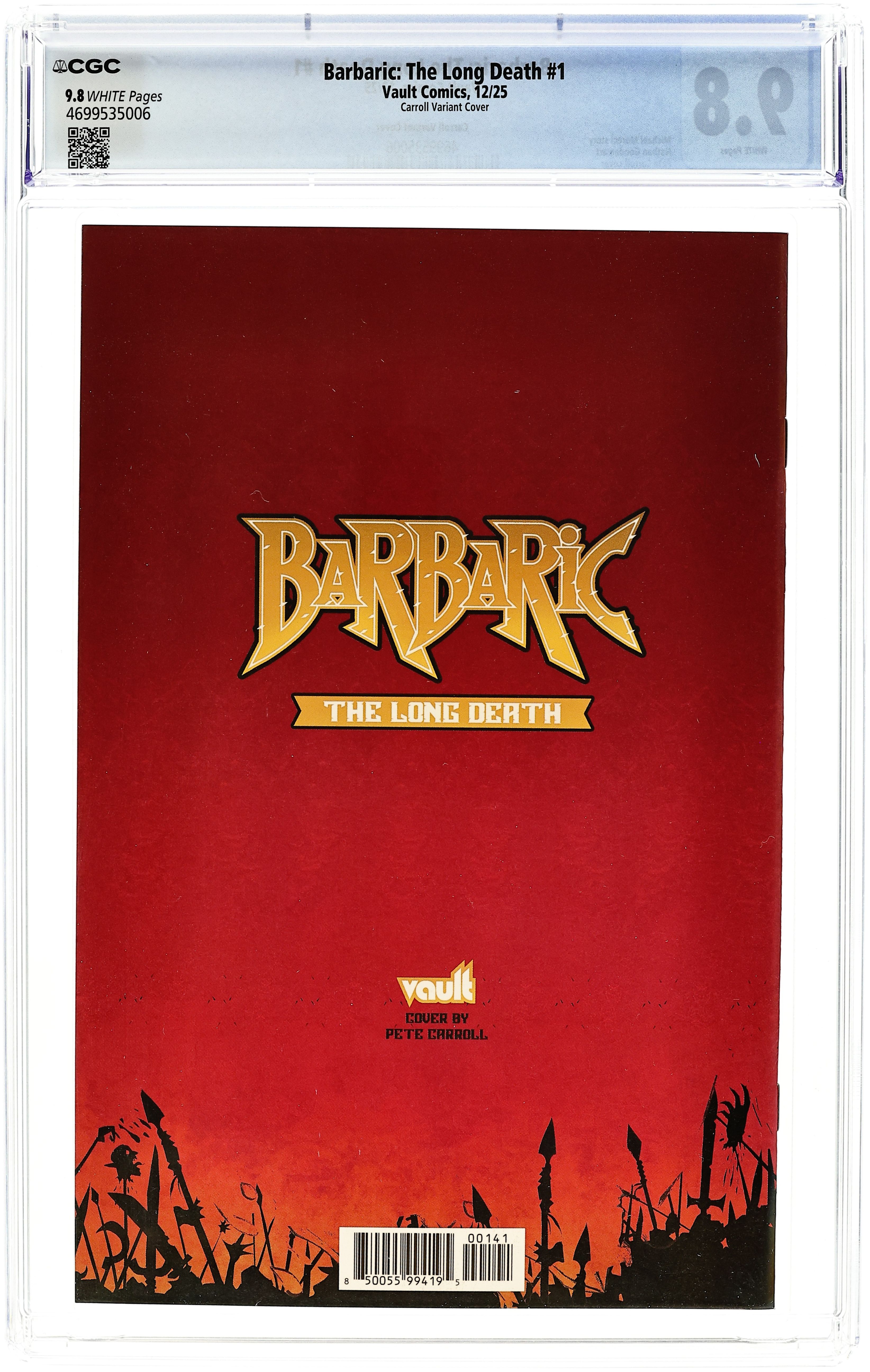 Published Dec 2025 by Vault Comics.Barbaric the Long Death (2025 Vault) 1D CGC 9.8