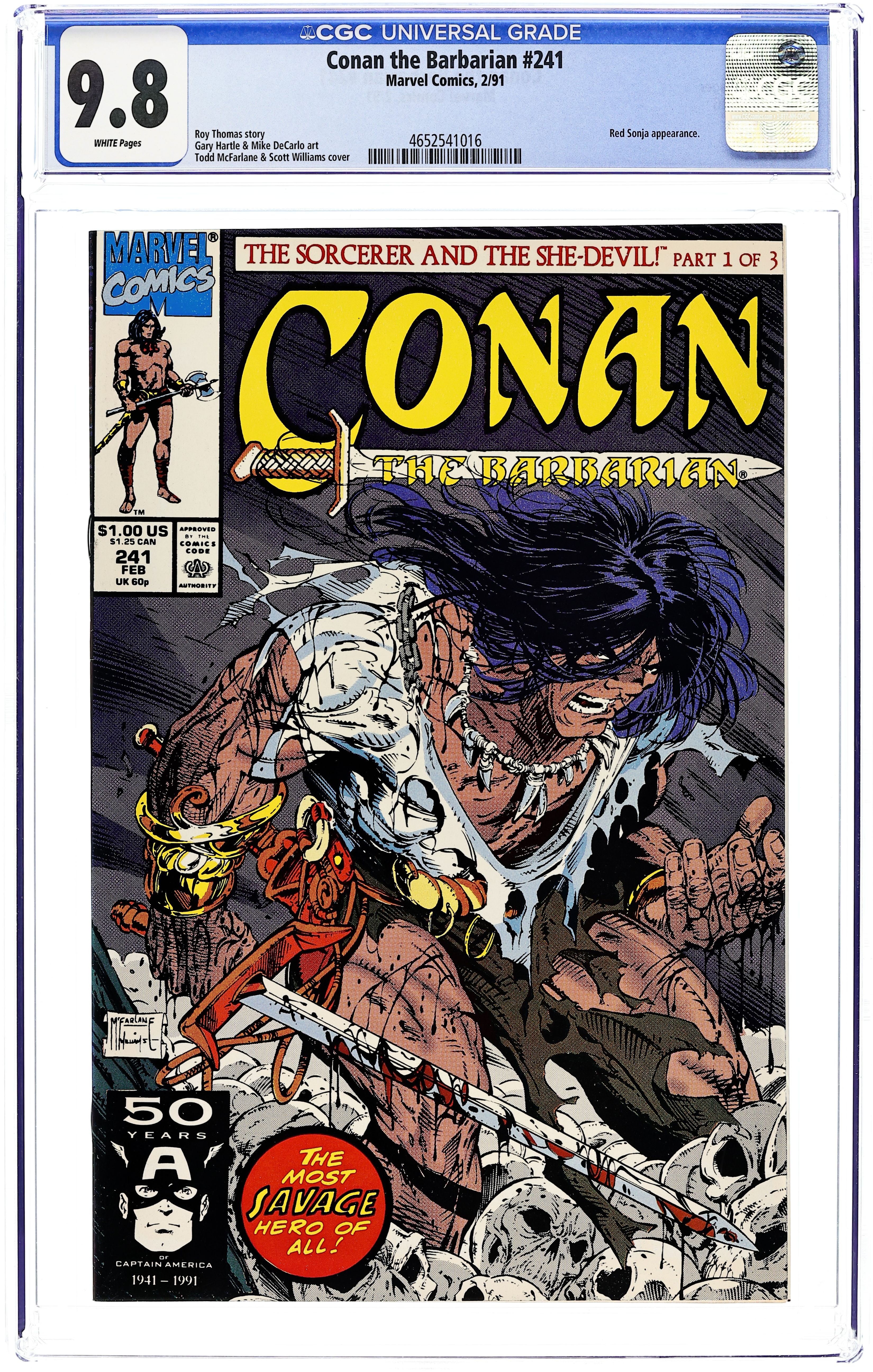 Direct Edition. Cover pencils by Todd McFarlane, inks by Scott Williams. All Roads Lead To Zamora, script by Roy Thomas, pencils by Gary Hartle, inks by Mike DeCarlo; Red Sonja is getting married, and Conan is anything but the best man when he suspects sorcery, and not love, is her motivation. 36 pgs. Cover price $1.00. Cover price $1.00.