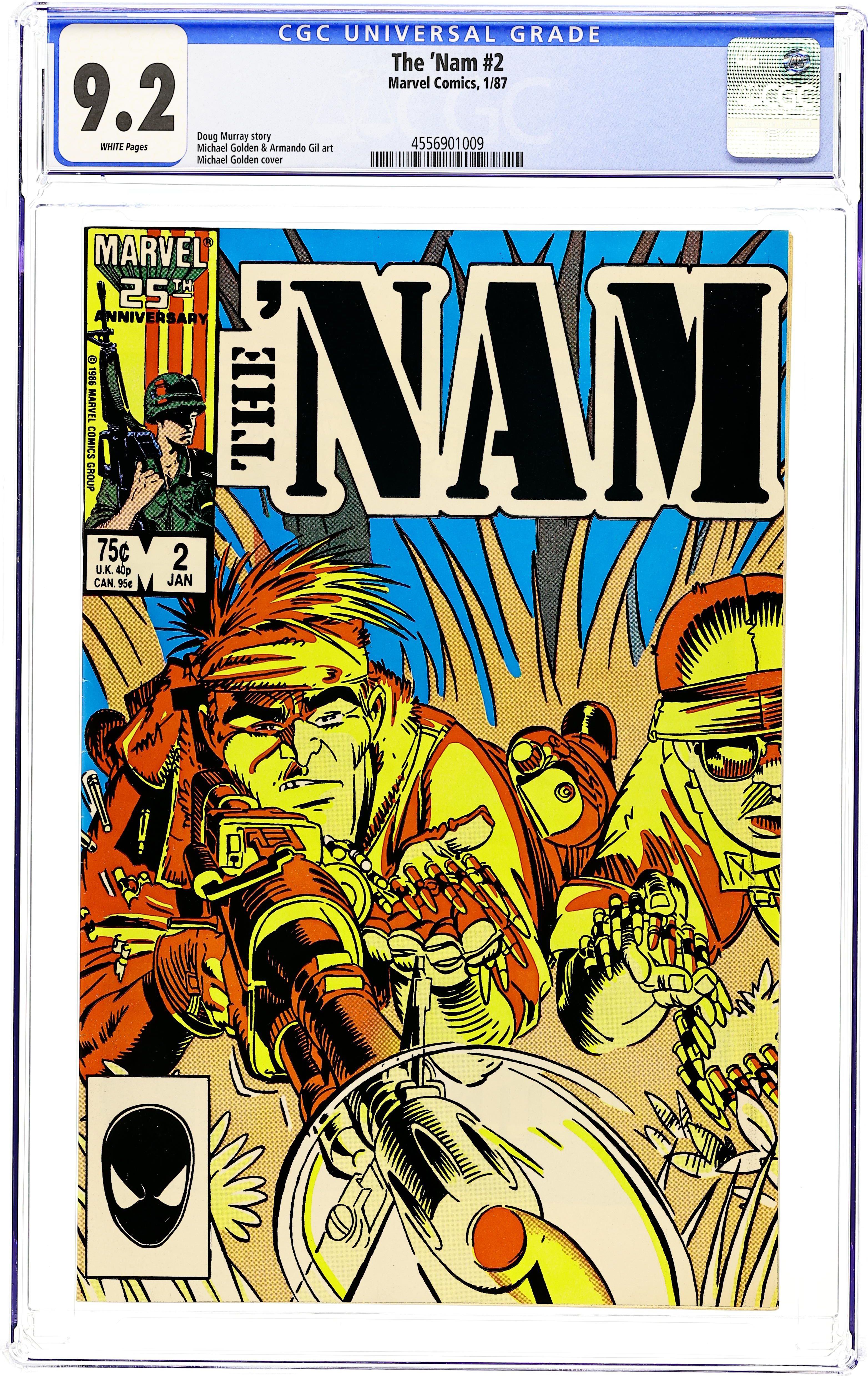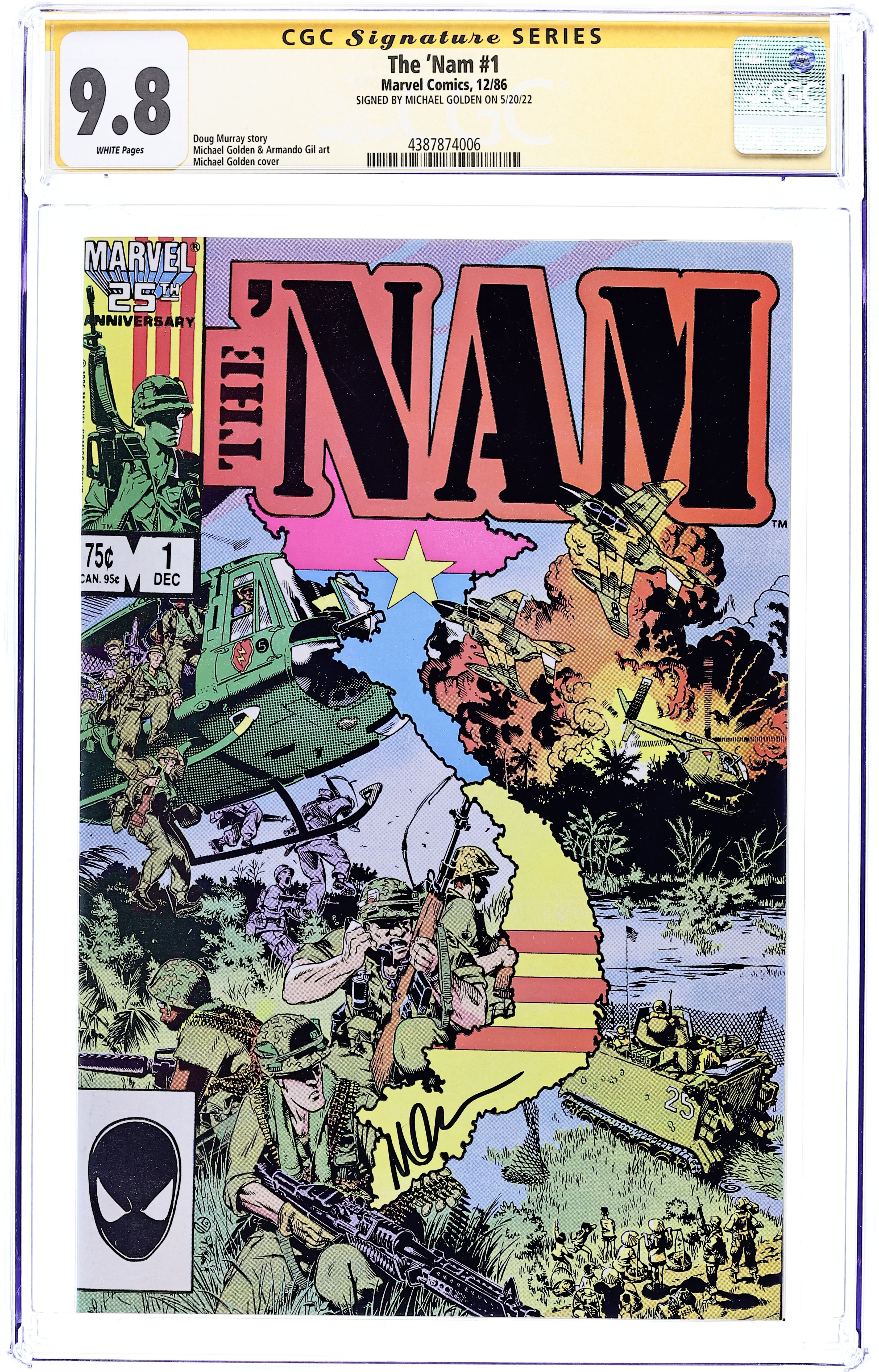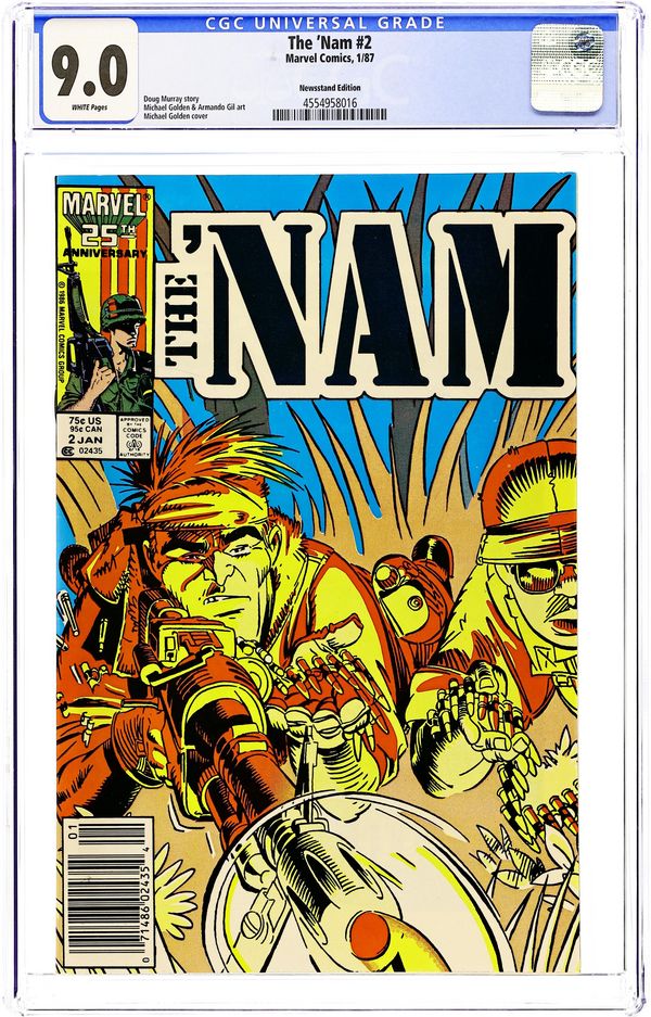 Newsstand Edition. The reality of life and battle in the bases and jungles of Vietnam as seen through the eyes of Pfc. Marks and his platoon reveals heroism and cowardice, and the corruption that protects the cowards! "Dust Off" is written by Doug Murray, with art by Mike Golden and Armando Gil. Cover by Mike Golden. Cover price $0.75.
