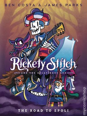 (W) Ben Costa, James Parks (A/CA) Ben Costa James Parks and Ben Costa The Hobbit meets Cartoon Network's smash-hit Adventure Time in this full-color graphic novel series kickoff as a singing skeleton searches for his origins alongside his adorable gelatin monster sidekick! Rickety Stitch is a walking, talking, singing skeleton minstrel, the only animated skeleton in the dungeon who seems to have retained his soul. He has no idea who he used to be when he was covered in a living, breathing sack of meat and skin. His only clue to his former identity is a song he hears snippets of in his dreams, an epic bard's tale that could also explain the old fog covering the comical fantasy land of Eem... Oh, and his sidekick and only friend is a cube of sentient goo. In this rollicking first volume, Rickety encounters imps, gnomes, giants, unicorns, a mysterious lady knight, and other fantasy dwellers on his quest to uncover his identity and spread his (painfully bad) music far and wide. Cover price $18.99.