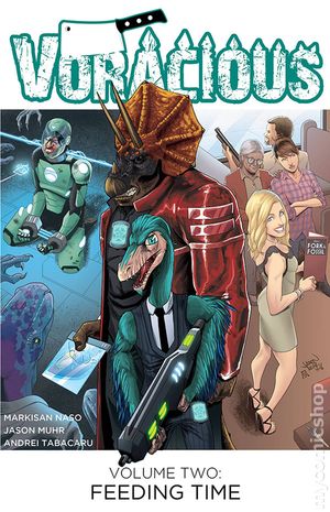 (W) Markisan Naso (A/CA) Jason Muhr Hunting dinosaurs and secretly serving them at his diner has helped Chef Nate Willner become a big success. But when he discovers his hunts take place on an alternate Earth where dinosaurs evolve to rule the far future, his world begins to burn around him faster than any beast he's ever roasted. This second volume collects the critically acclaimed VORACIOUS: Feeding Time #1-5. VORACIOUS named one of the Best New Series of 2016 by Comics Alliance! Cover price $14.99.